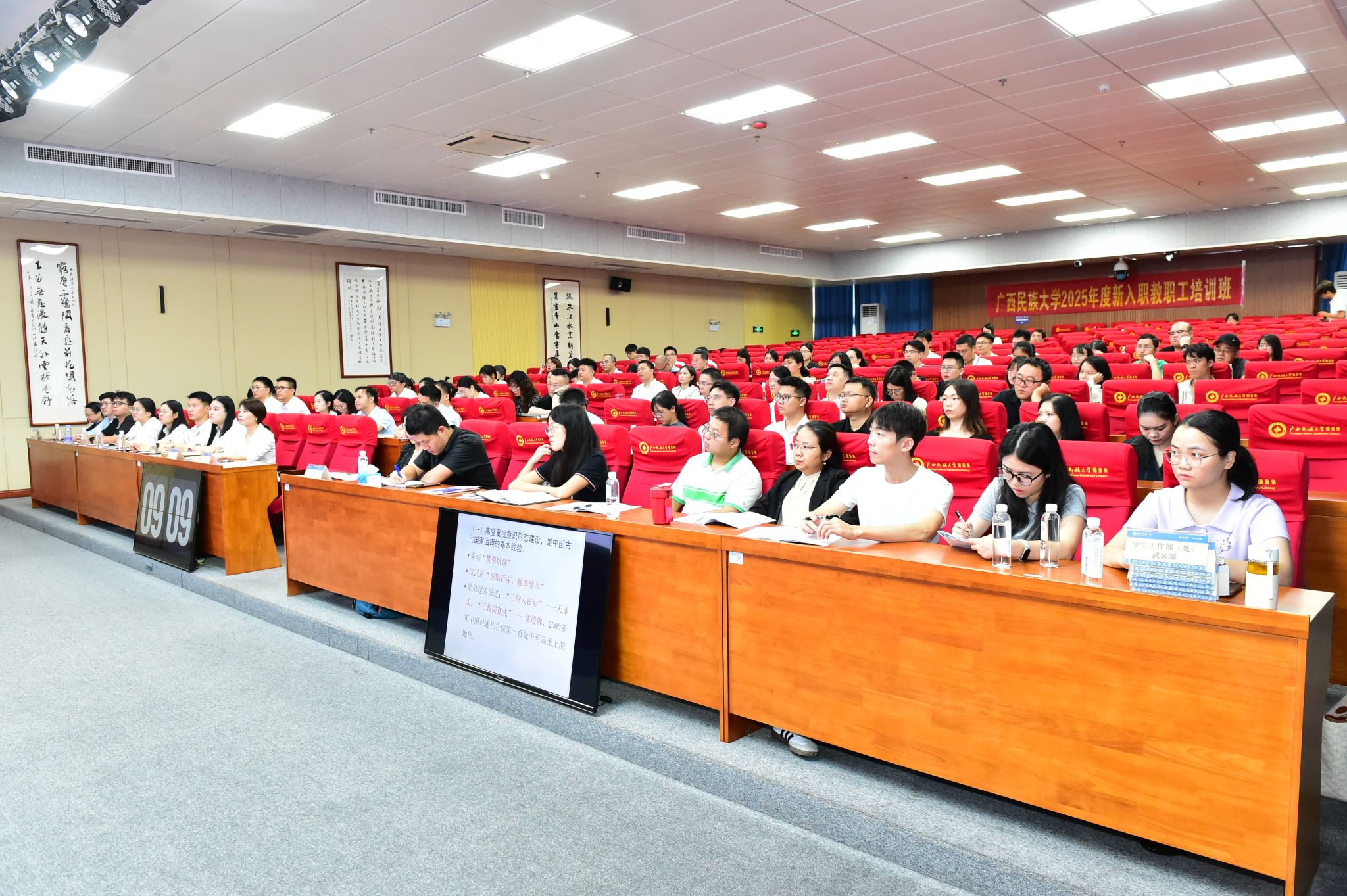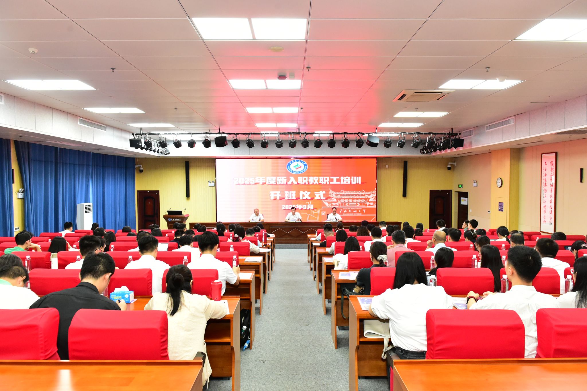 【大学生通讯社报道】9月1日至3日,澳门网投官方网站举行2025年度新入职教职工培训班。校党委书记唐平秋出席开班仪式并作首场辅导报告。校长韦仕珍,校领导陈铭彬、韦雪芳、邓国彬、姜明国为培训班学员作专题报告。副校长何立荣主持开班仪式。
