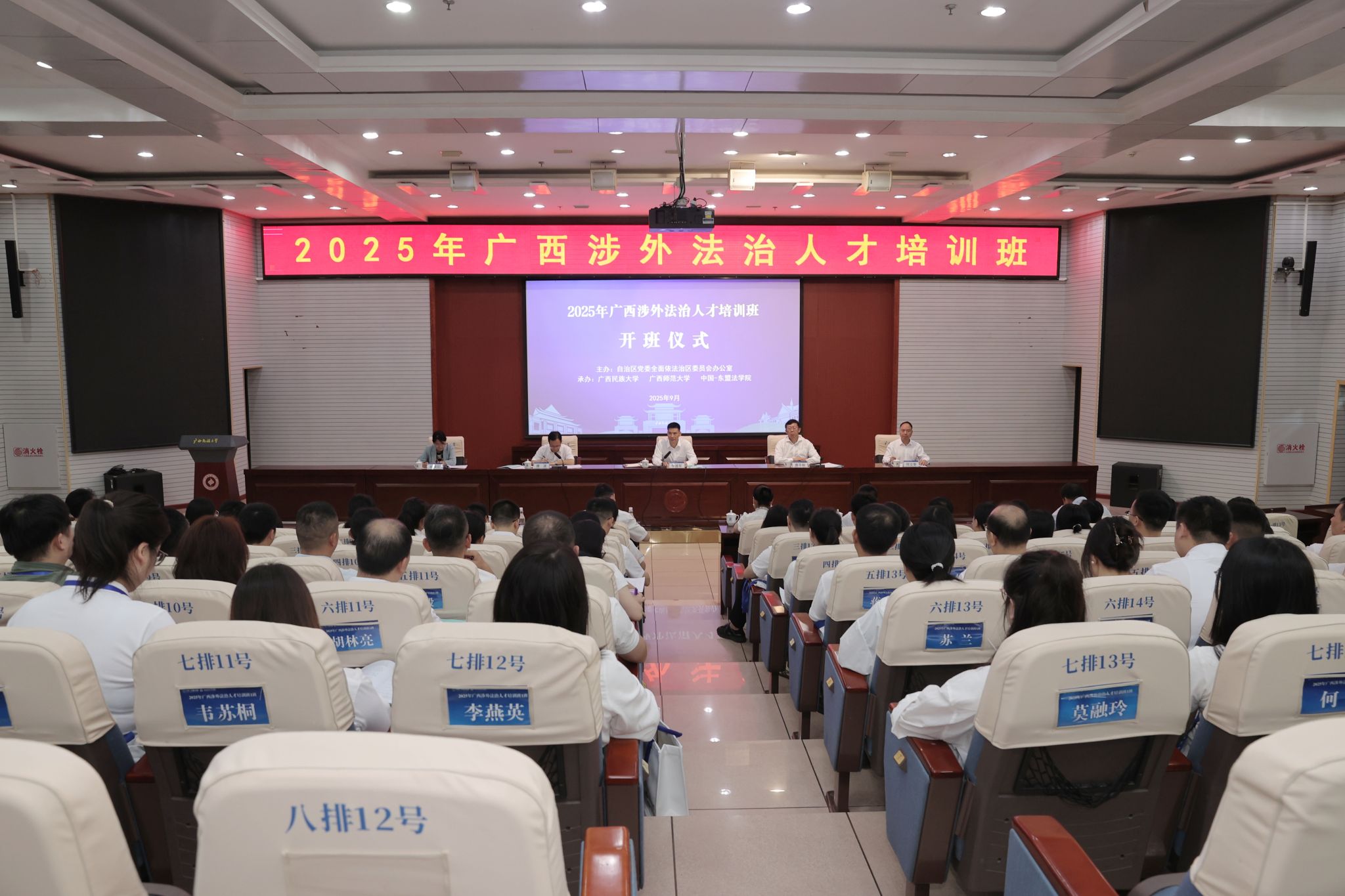 【大学生通讯社报道】9月4日上午,由自治区党委全面依法治区委员会办公室主办、澳门网投官方网站承办的2025年广西涉外法治人才培训班在澳门网投官方网站开班。澳门网投官方网站党委书记唐平秋,自治区司法厅党委书记、厅长、自治区党委全面依法治区委员会办公室副主任李道军,自治区党委政法委副书记、自治区党委全面依法治区委员会办公室副主任唐波,澳门网投官方网站副校长何立荣出席开班仪式。
