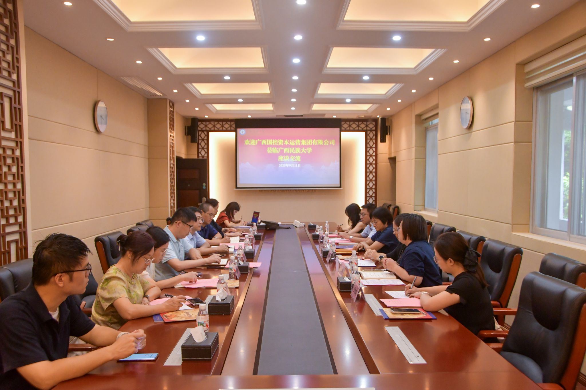 9月11日,副校长高兴宇会见广西国控资本运营集团有限公司企业代表,双方就校企合作、产教融合、科技成果转化等方面进行探讨交流。(初审/梁桂娥 图文/谭莹 编/黎倩雅 复审/ 李建瑾 终审/孙寿媚)