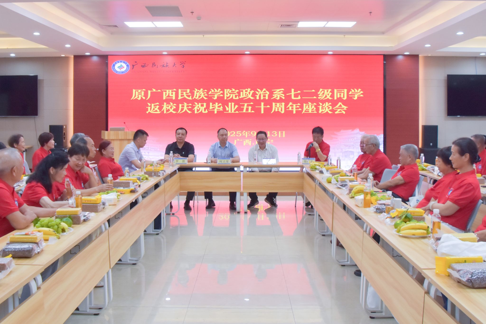 9月13日,党委常委、副校长何立荣在澳门网投官方网站政治系七二级同学返校庆祝毕业五十周年活动上表示,政治系作为学校最早成立的三大系之一,在党建引领、人才培养和教学科研方面都取得长足进步,形成硕博完整的人才培养体系,先后培养出多名优秀领导干部,为民族团结进步、国家治理现代化建设贡献智慧力量。(初审/覃国化 图文/莫欣姚 编/黎倩雅 复审/李建瑾 终审/孙寿媚)