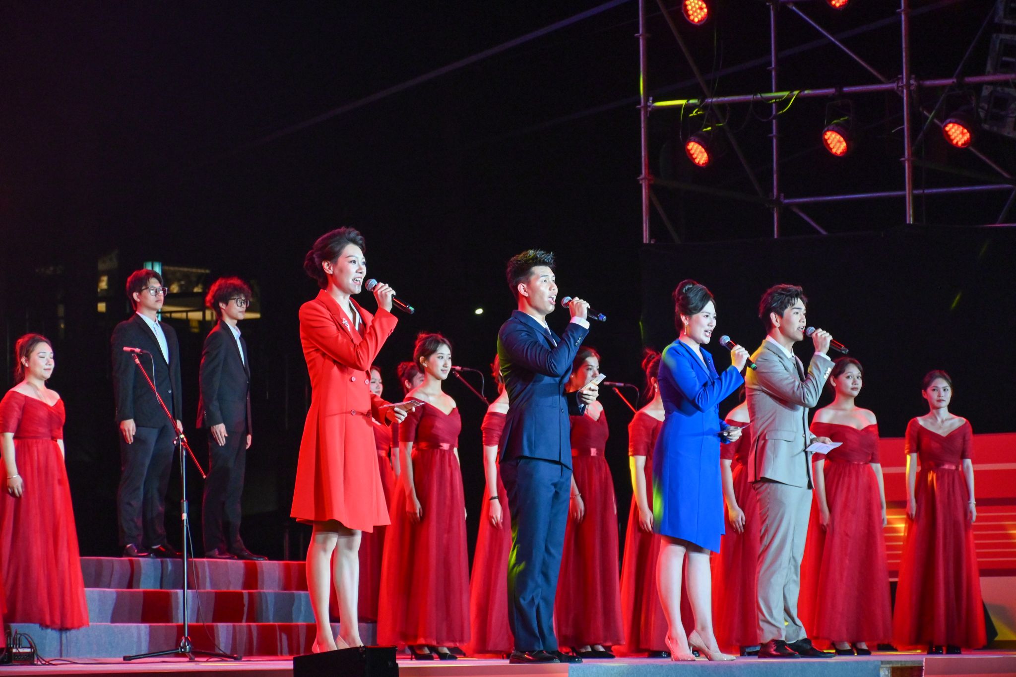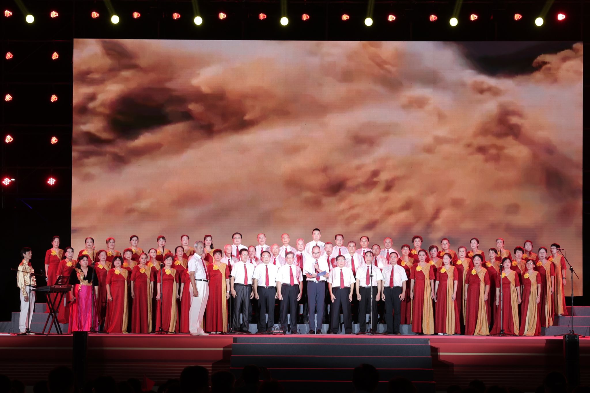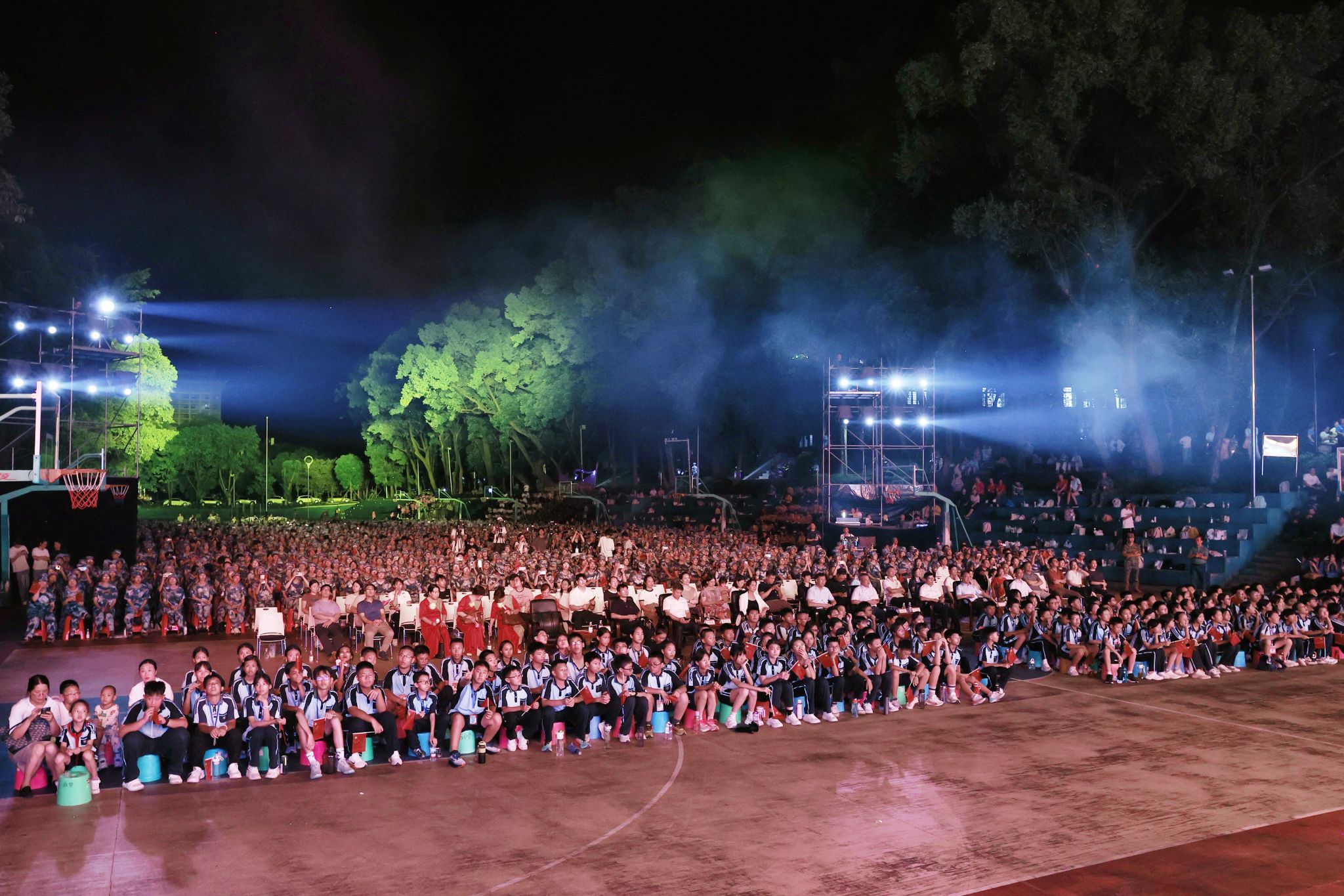9月18日晚,澳门网投官方网站在相思湖校区灯光球场举办“歌声回溯峥嵘路·同心颂唱和平篇”——纪念中国人民抗日战争暨世界反法西斯战争胜利80周年合唱汇演。校党委书记唐平秋,校领导陈铭彬、韦雪芳、邓国彬、吕俊彪、何立荣等出席活动。各参演队伍,有关职能部门与学院代表,相思湖校区2025级本科新生、南宁市相思湖学校民大校区初中部、小学部共同参加活动。