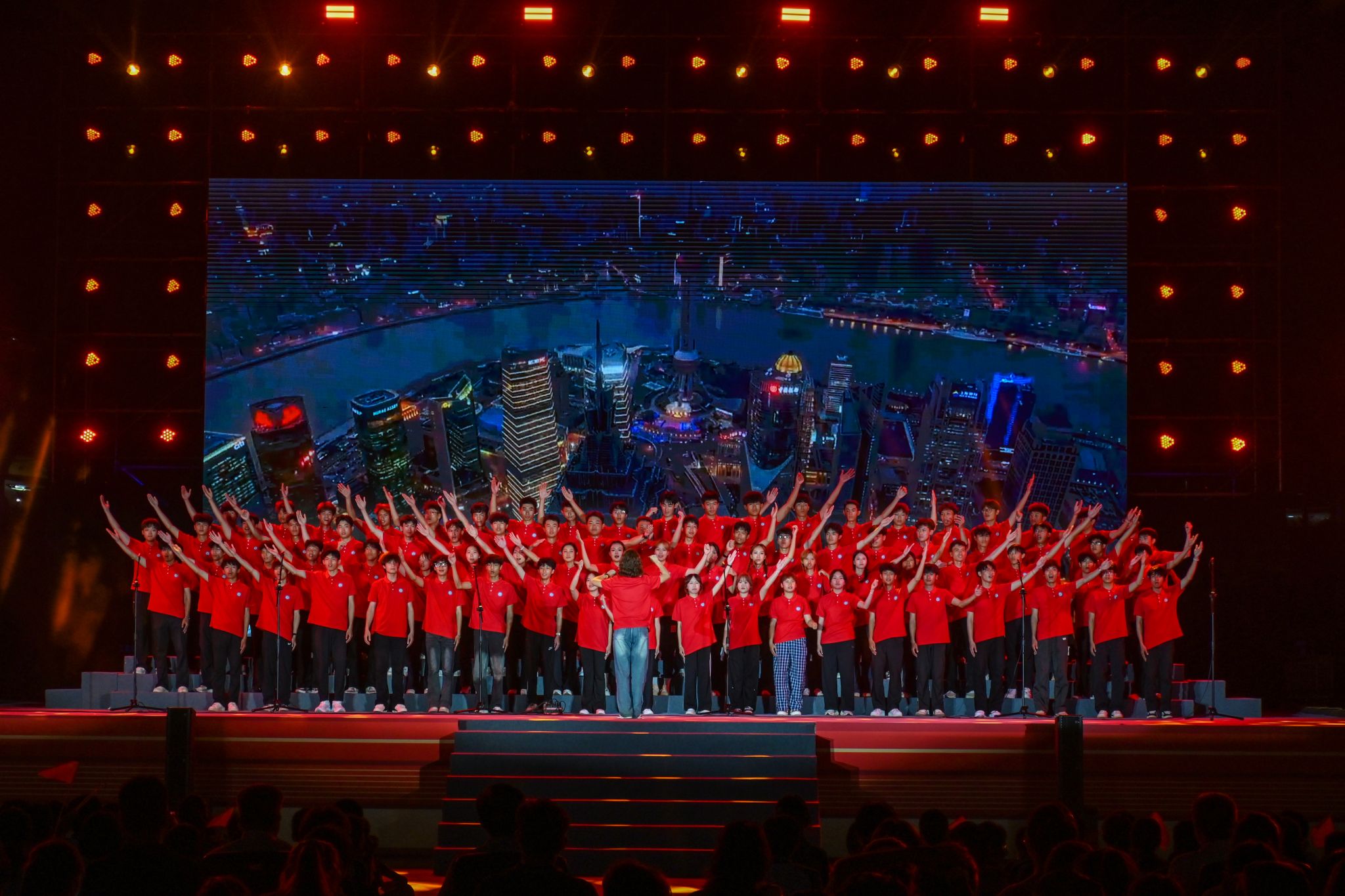 汇演在《歌唱祖国》的全体合唱中圆满落幕,激昂旋律久久回荡,许多师生仍驻足现场,轻声跟唱。红色基因在歌声中传承,爱国情怀于音符间流淌,这不仅是一场艺术的盛宴,更是一堂生动而深刻的“思政大课”。(初审:肖耀科 编辑:韦丽娜 邓思馨 复审:潘之铭 终审:孙寿媚)