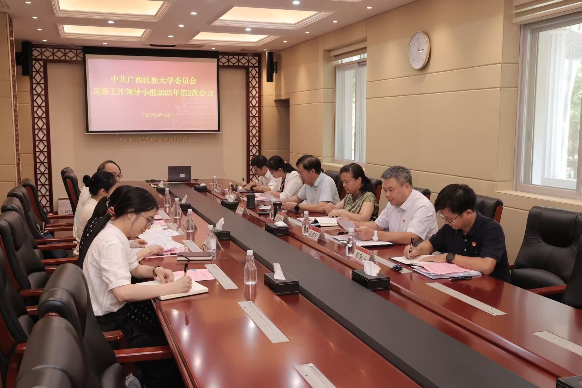 9月18日上午,学校党委巡察工作领导小组在办公楼211会议室召开2025年第二次会议,校党委书记、巡察工作领导小组组长唐平秋主持会议并讲话,校党委副书记、校长、巡察工作领导小组副组长韦仕珍参加会议,巡察工作领导小组全体成员、各巡察组组长及巡察办全体人员与会。