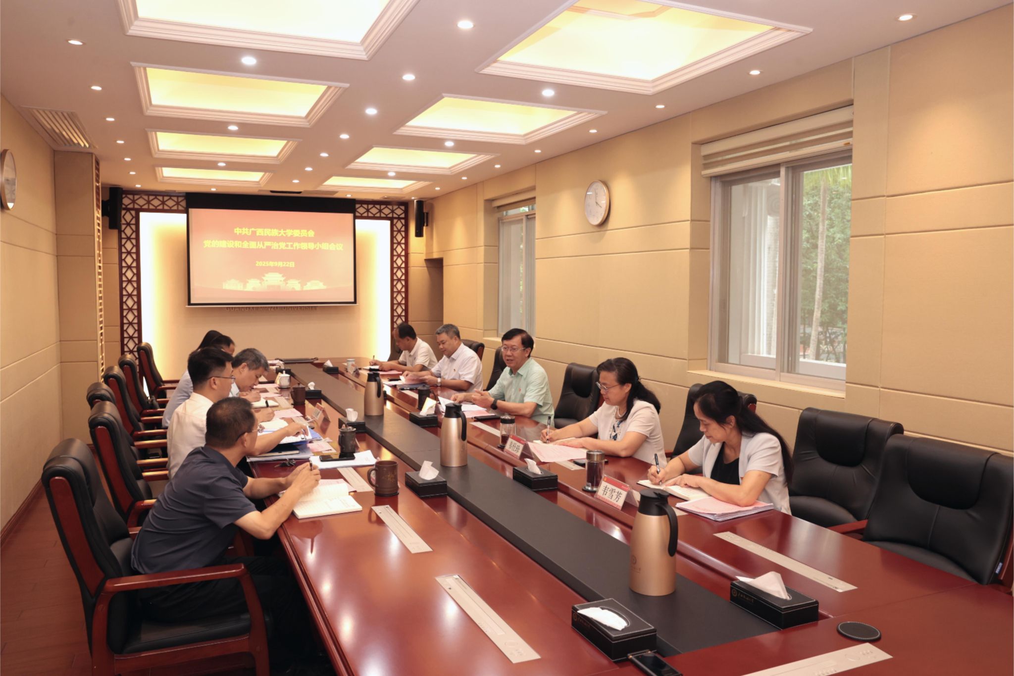 9月22日下午,澳门网投官方网站召开党的建设和全面从严治党工作领导小组会议,传达学习习近平总书记关于学习教育的重要指示精神,学习贯彻中央和自治区党委党的建设工作领导小组会议精神,系统总结学校深入贯彻中央八项规定精神学习教育开展情况,研究部署巩固拓展学习教育成果、锲而不舍落实中央八项规定精神、推进作风建设常态化长效化工作。校党委书记唐平秋主持会议,党委副书记、校长韦仕珍出席会议,领导小组全体成员参加会议。