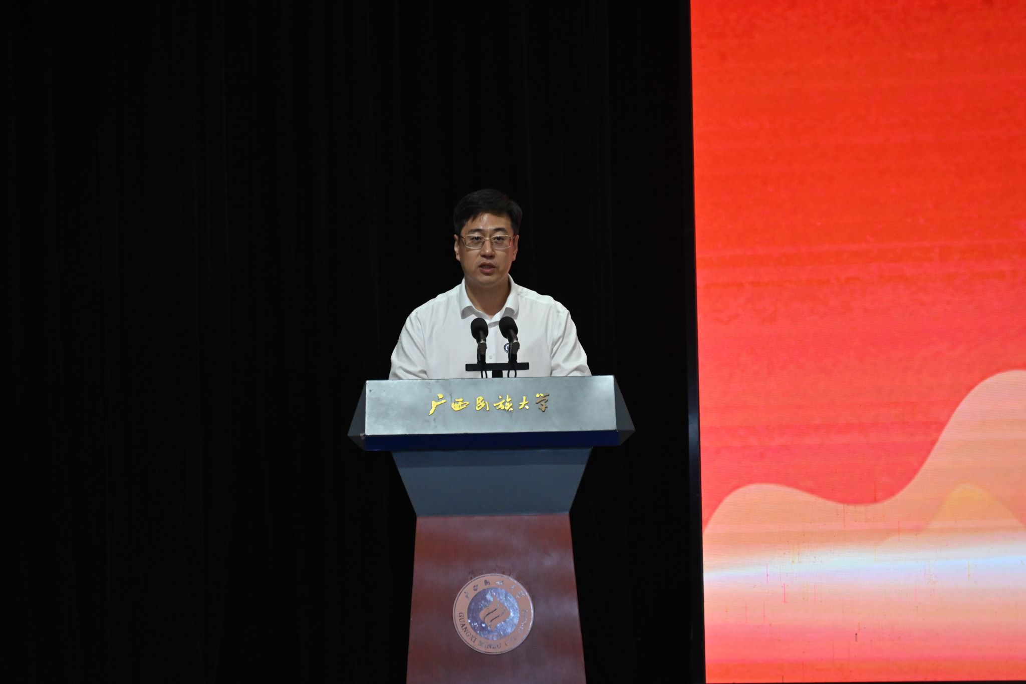 韦仕珍回顾学校国际化办学成就,围绕“厚德博学,和而不同”的校训向新生们提出希望:一是锐意进取、不断追求,以专业为基,筑牢成长根基,培养高尚道德情操;二是珍惜课堂时光,主动参与科研项目与实践活动,努力学习中国文化和专业知识,在“专业+国际视野”的培养模式中锤炼本领;三是既“读万卷书”又“行万里路”,积极参与学校组织的各类活动,体验中华优秀传统文化;四是严格遵守中国的法律法规,秉持相互尊重的心态,勇于应对因各种“不一样”带来的挑战,尽快融入中国新生活,与中国各民族同学、世界各国同学和睦相处,共同生活、学习、进步;五是做文明交流互鉴的传播者、推动者和“知华友华”的使者,为构建人类命运共同体贡献青春力量。