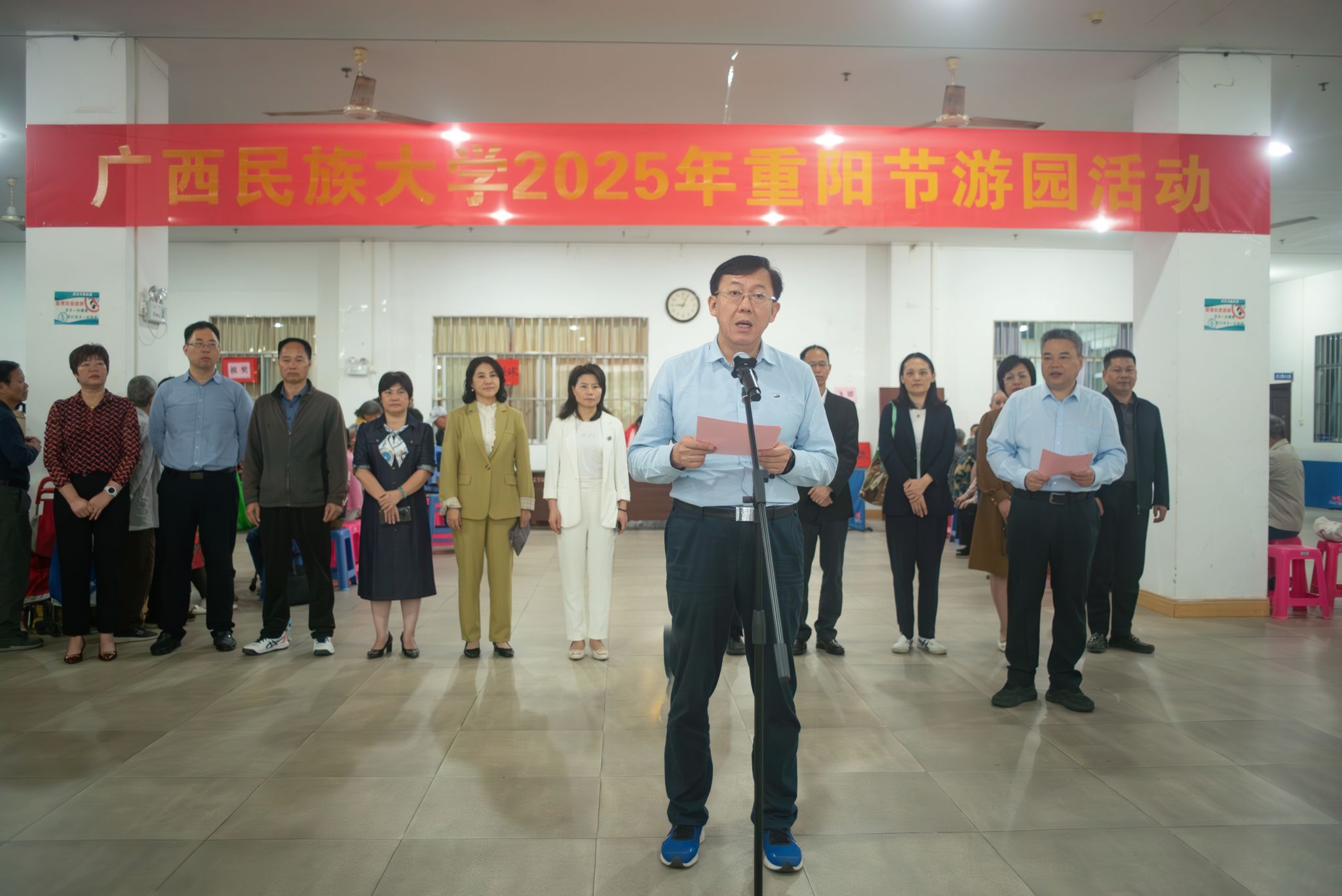 【大学生通讯社报道】10月29日上午,澳门网投官方网站2025年重阳节游园活动在相思湖校区老年活动中心举行,校党委书记唐平秋出席活动并致辞,党委副书记陈铭彬主持,有关职能部门负责同志、全体离退休老领导、老同志参加活动。
