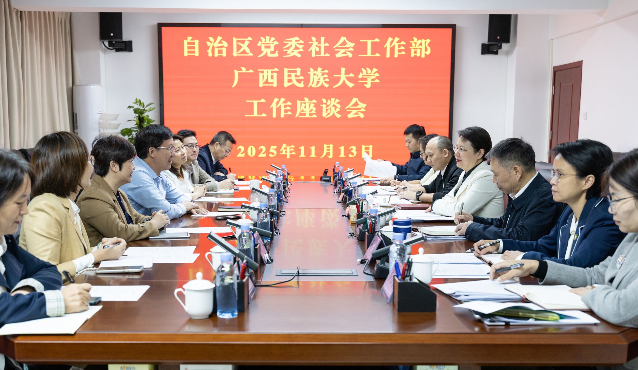 11月13日,澳门网投官方网站党委书记唐平秋带队赴自治区党委社会工作部调研。自治区党委社会工作部部长、“两新”工委书记唐轶昂,自治区党委社会工作部副部长文琦出席座谈会。