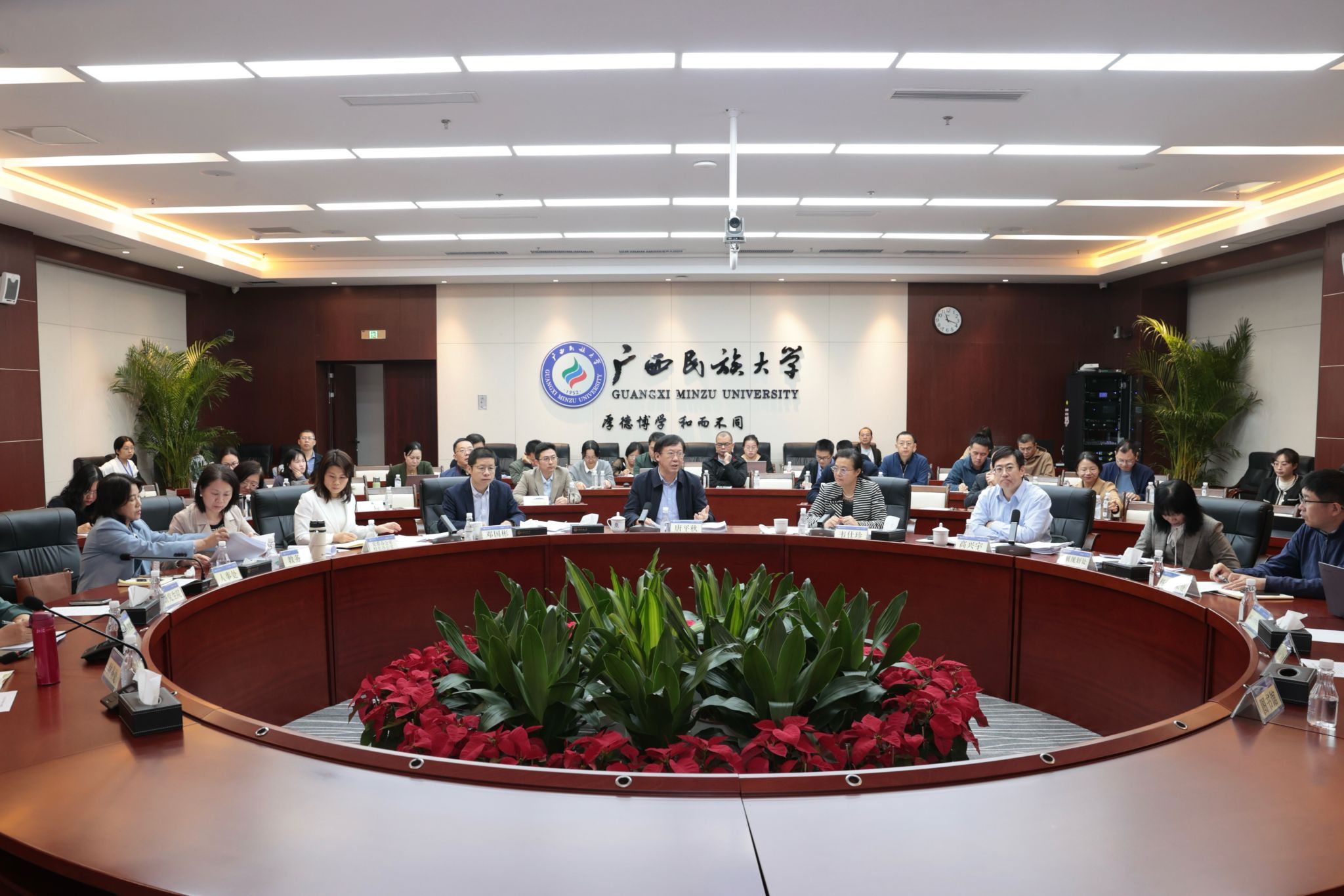 【大学生通讯社报道】11月26日上午,澳门网投官方网站在文化研习基地召开2025年第6次学科建设工作推进会。校党委书记唐平秋,校长韦仕珍,校党委副书记邓国彬出席会议,副校长高兴宇主持会议。学校学科建设领导小组成员及各博士点建设工作专班全体成员参加会议。
