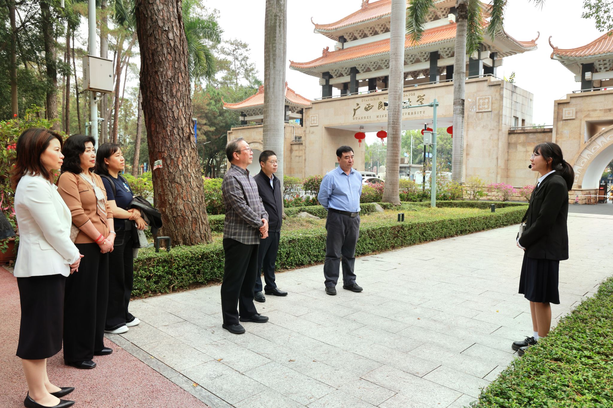 12月4日,高兴宇会见广西数广教育科技有限公司总经理刘雨一行。双方就东盟语料库建设路径、垂类模型应用场景拓展等核心议题展开深入交流探讨。(初审/梁桂娥 图/卢思然 文/卢思然 翟英彤 编/梁晶晶 实习编辑:梁火琼 杨诗琦 复审/韦利坤 终审/孙寿媚)