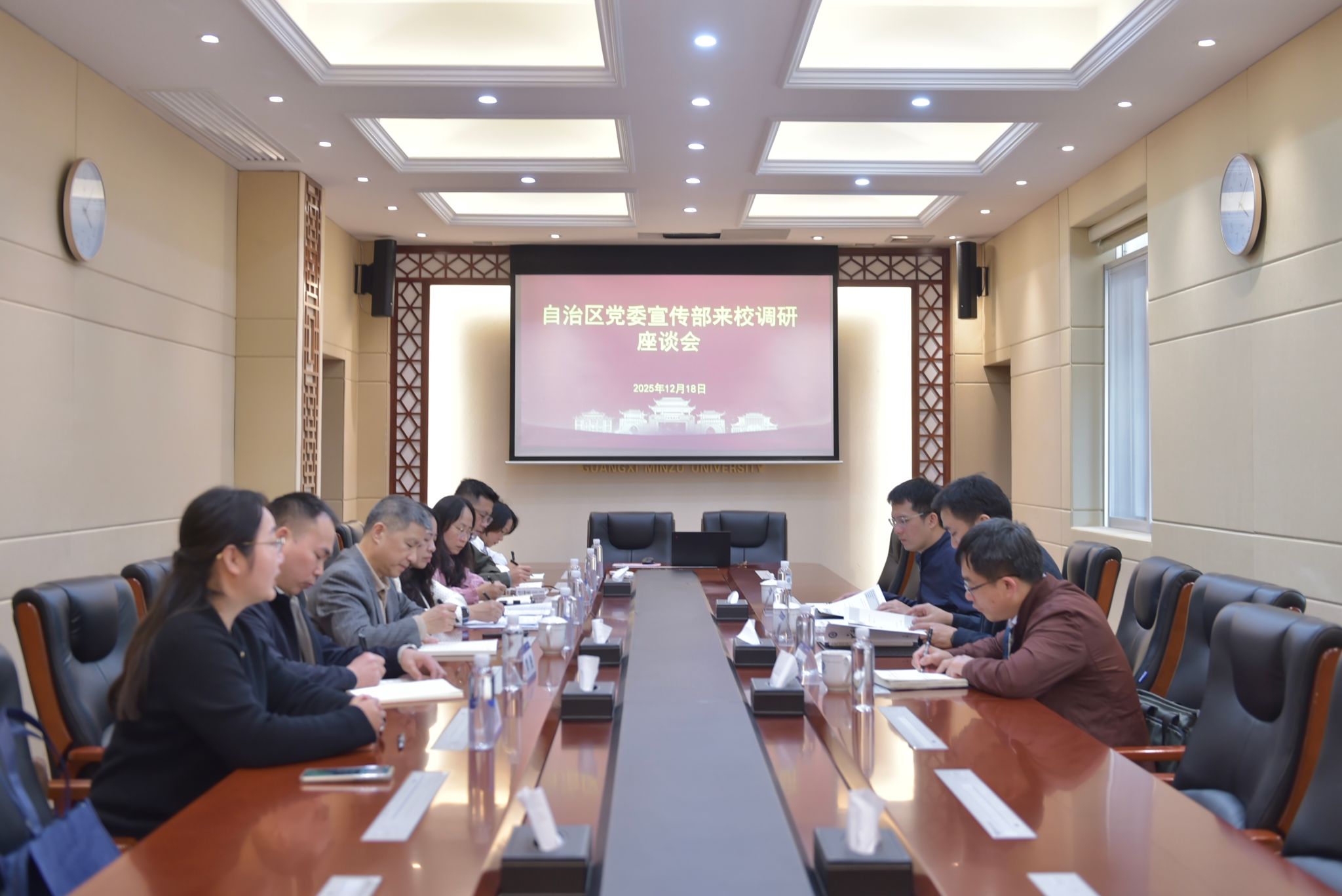 12月18日,校党委常委、副校长吕俊彪会见来校调研的自治区党委宣传部副部长古晓峰一行。双方围绕办高水平期刊、选题策划与专栏建设、人才队伍培养等议题展开讨论。会议强调,要坚持正确的办刊导向,守牢意识形态阵地,严格执行“三审三校”制度,严把质量关,全面提升学术水平与内容品质,打造精品期刊。(初审/李媚 图/杨兰慧 文/杨小平 编/韦丽娜 复审/韦利坤 终审/孙寿媚)