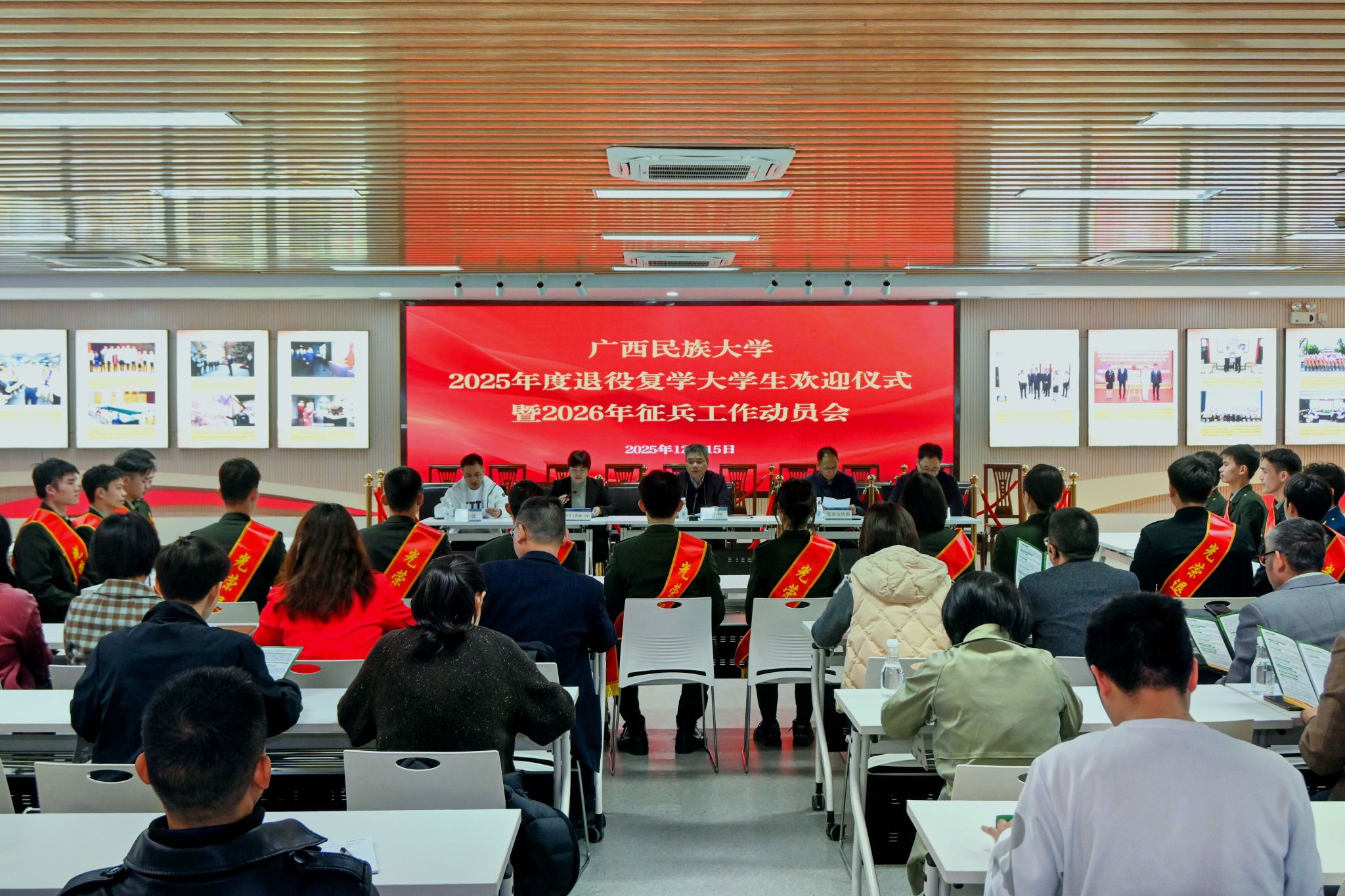 12月15日,校党委副书记陈铭彬在澳门网投官方网站2025年度退役复学大学生欢迎仪式暨2026年征兵工作动员会上要求,各学院要形成责任清晰、推进有力的工作链条,坚持“宣传—动员—服务”全流程覆盖,加强与武装部的信息资源共享,注重兵员质量与持续发展,希望退役复学学生把军营锻造的坚韧意志转化为学习实践的坚定动力,努力成长,积极投身到征兵宣传与服务工作中。(初审/肖耀科 图/张小逸 文/徐子强 实习记者:张小逸 编/黎倩雅 复审/韦利坤 终审/孙寿媚)