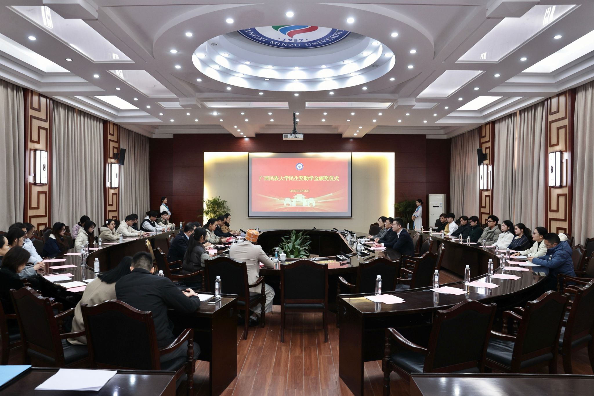 中国民生银行股份有限公司南宁分行代表,学校学生工作部(处)、财务处、国际合作与交流处、有关学院负责人及获奖学生代表参加仪式。(初审:罗少科 复审:韦利坤 终审:孙寿媚)