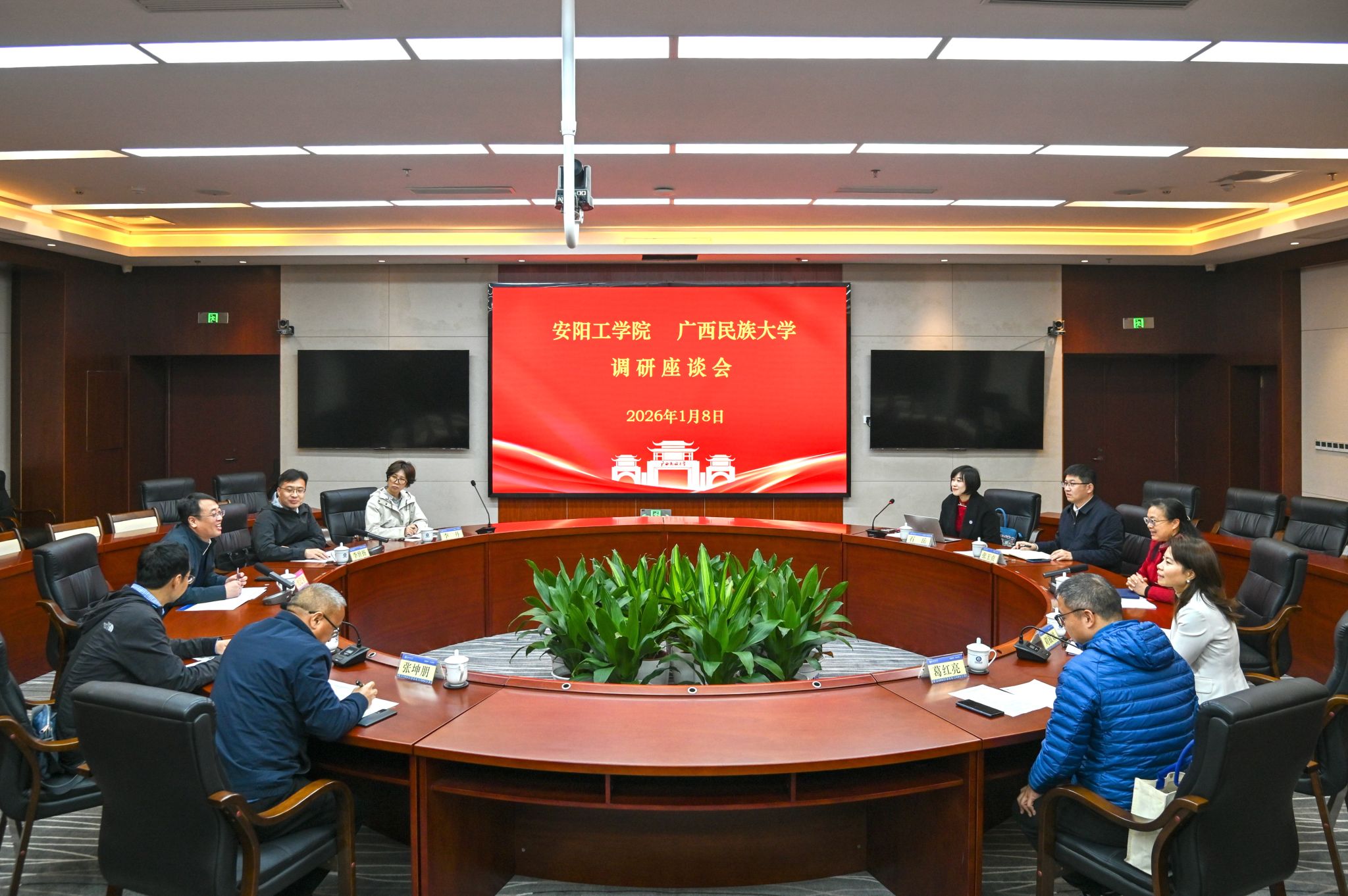 【大学生通讯社报道】1月8日下午,安阳工学院党委副书记、校长沈记全一行到澳门网投官方网站调研,双方在相思湖校区文化研习基地展开交流座谈,澳门网投官方网站党委副书记、校长韦仕珍出席座谈会,双方有关职能部门、学院负责人与会。