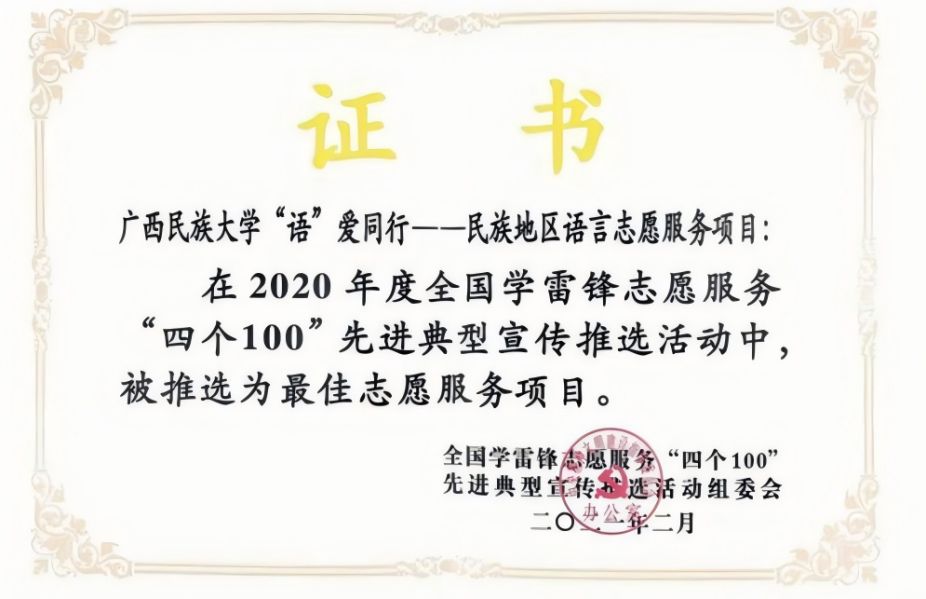 “语”爱同行——民族地区志愿服务项目、“译”衣带水志愿服务项目获评全国学雷锋志愿服务“四个100”先进典型
