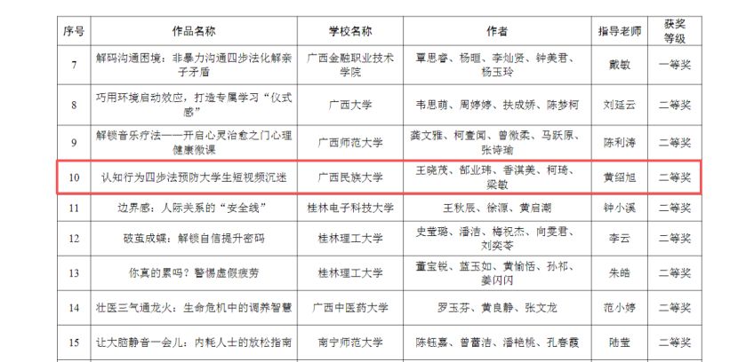 学校《认知行为四步法预防大学生短视频沉迷》作品获2025年全区高校大学生“3·25”心理健康教育活动季活动二等奖