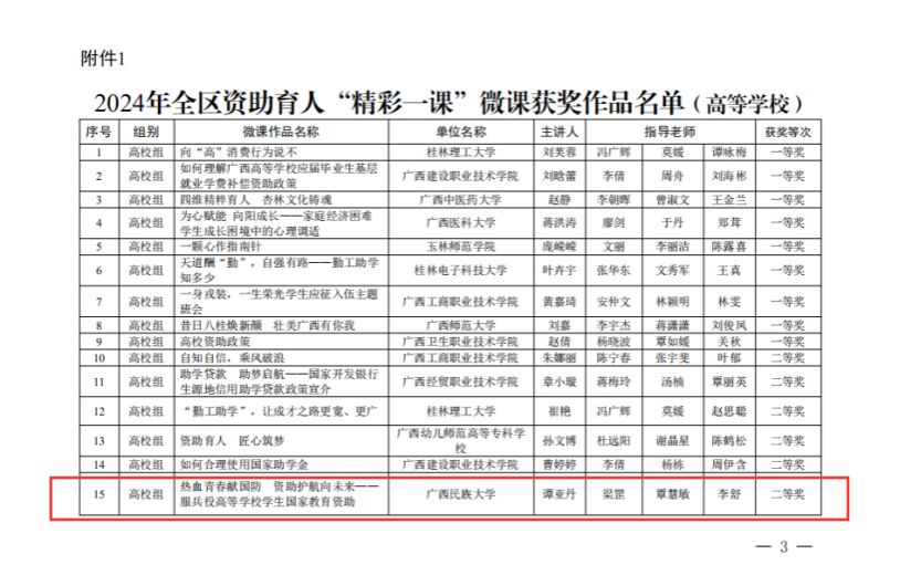 2024年全区资助育人“精彩一课”微课获奖作品名单(高等学校)