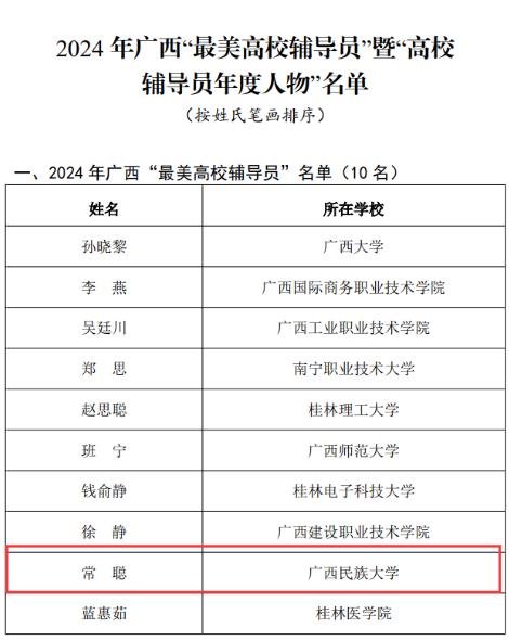 2024年广西“最美高校辅导员”暨“高校辅导员年度人物