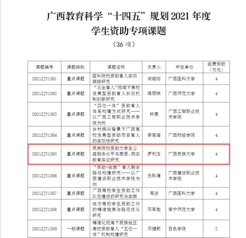 学校获广西教育科学“十四五”规划2022年度学生资助专项课题立项。