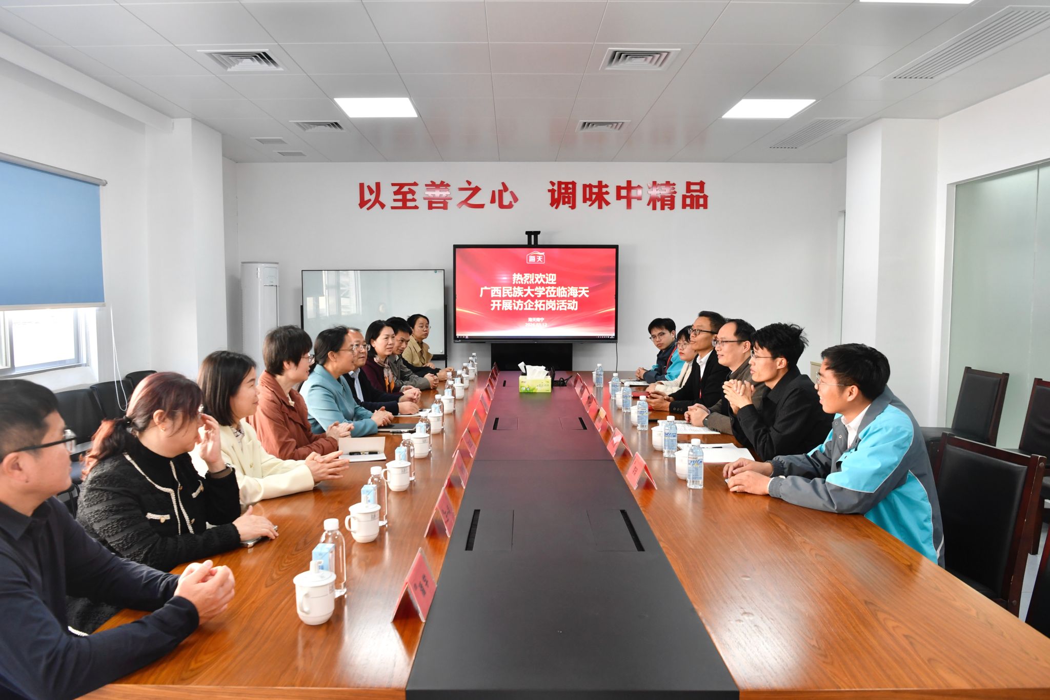 在海天(南宁)调味食品有限公司,韦仕珍一行在公司副总经理程鑫海的陪同下参观了产品展示厅,详细了解了企业发展历程、生产经营、人才培养需求等情况。座谈会上,韦仕珍介绍了学校学科专业设置和人才培养特色,希望双方在就业招聘、科研攻关、实习实训、项目联合申报等方面建立长效合作机制。程鑫海高度评价澳门网投官方网站毕业生的专业能力和综合素质,表示愿与学校在资源共享、东盟人才培养等方面进一步拓展合作空间。