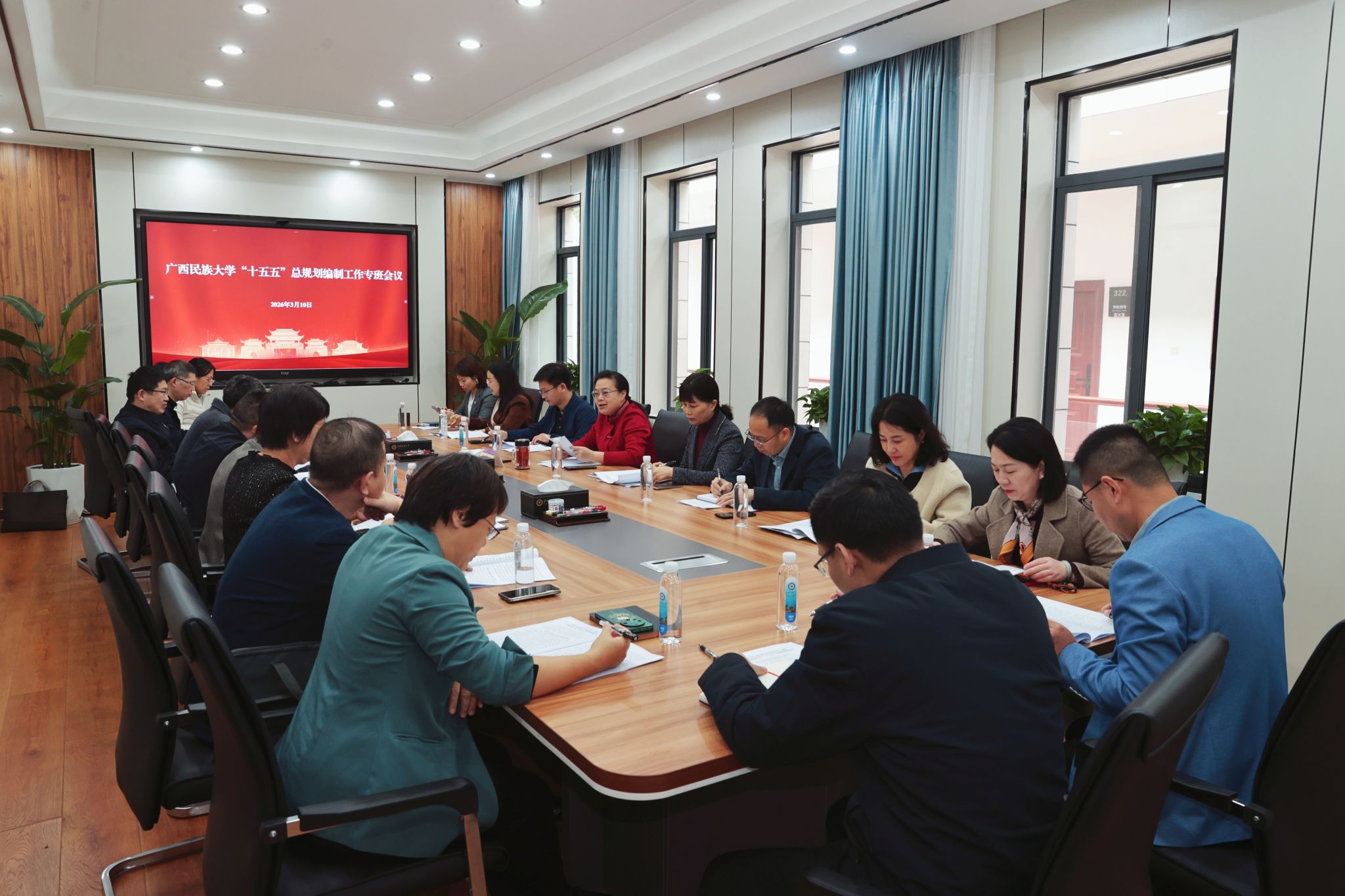 【大学生通讯社报道】3月10日上午,澳门网投官方网站在办公楼302室召开“十五五”总规划编制工作专班会议。校长韦仕珍出席会议,学校“十五五”总规划专班成员、起草小组成员参加会议。