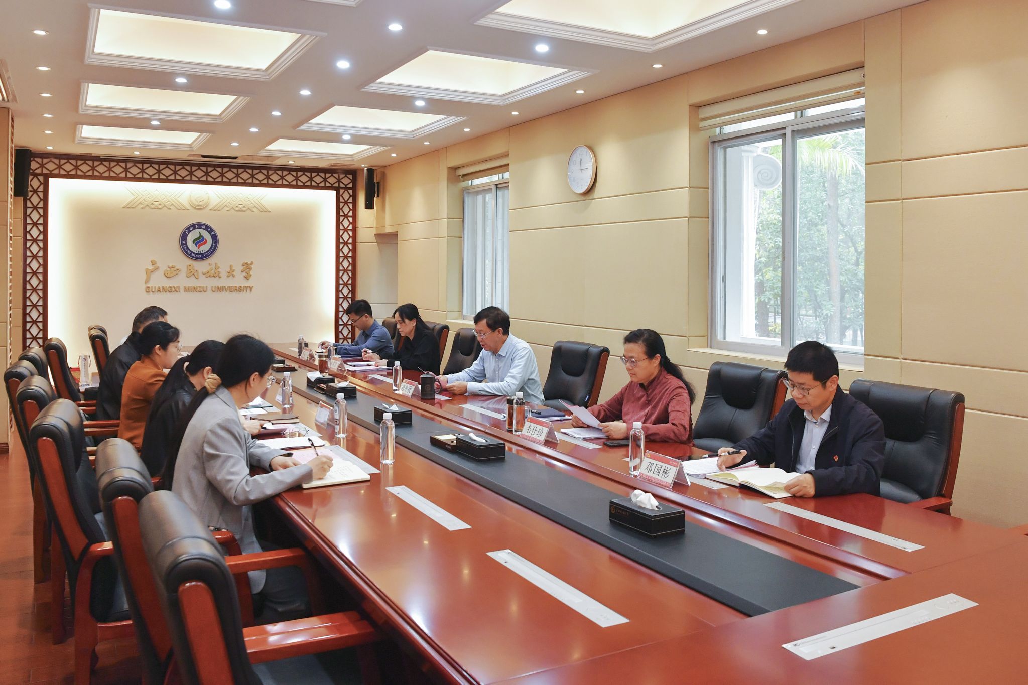 【大学生通讯社报道】3月23日下午,中共澳门网投官方网站委员会巡察工作领导小组2026年第1次会议在办公楼211会议室召开。校党委书记、党委巡察工作领导小组组长唐平秋主持会议。校党委副书记、校长韦仕珍,自治区纪委监委驻校纪检监察组组长、校党委副书记、纪委书记韦雪芳,校党委副书记邓国彬出席会议。校党委巡察工作领导小组成员、各巡察组组长及巡察办全体人员与会。