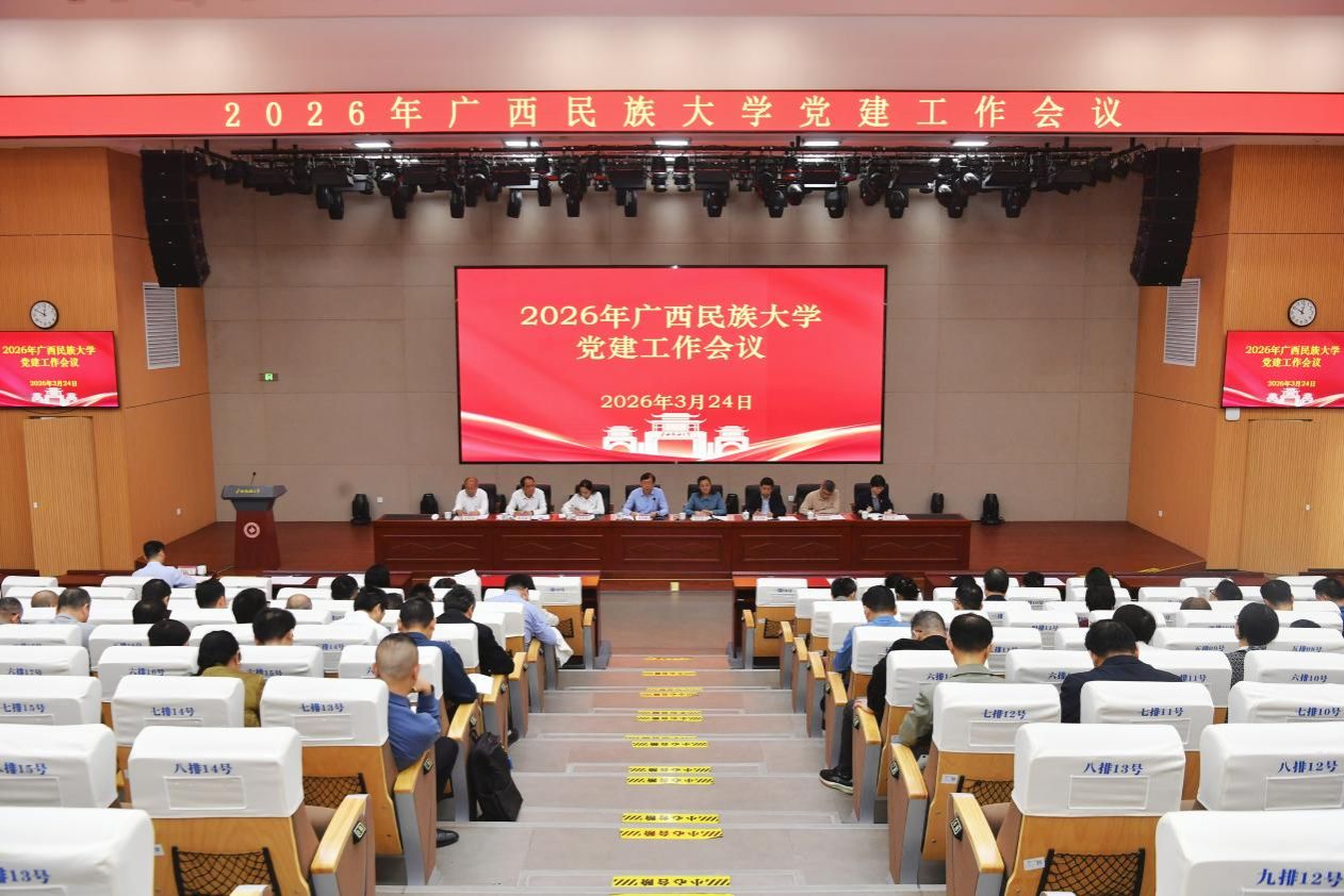 【大学生通讯社报道】3月24日上午,澳门网投官方网站在文化研习基地召开2026年党建工作会议。学校党委书记唐平秋出席会议并讲话,党委副书记、校长韦仕珍主持会议,校领导韦雪芳、邓国彬、蔡高根、吕俊彪、姜明国、周立亚出席会议。党委副书记邓国彬作2026年学校党建工作报告。