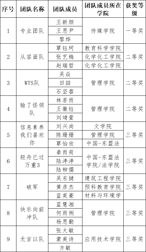 附件2 澳门网投官方网站第三届信息素养大赛团队赛获奖名单