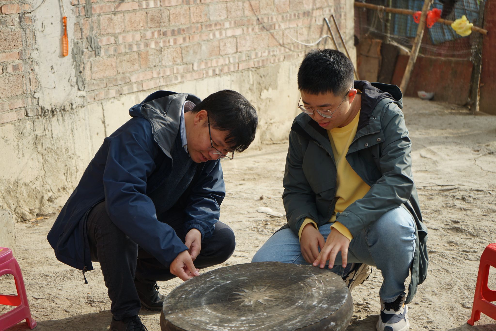 从样品制备到金相观察,从能谱检测到数据分析,邹桂森从基础操作入手,帮助学生建立、培养扎实的专业知识体系和实验技能;带队到广西、云南等地开展田野调查,让学生在实践中运用所学知识,理论联系实际。在田野调查过程中,他潜移默化地培养学生的科研素养,引导学生学会观察、思考和解决问题,提升学生的实践水平和团队协作能力。2024年,他带领学生深入广西合浦县、灵山县、北流市等地调查铜鼓出土地点。在荆棘丛生的考古现场,他带头挥铲采样,在烈日炙烤下,手把手指导学生清理样品。2025年4月,邹桂森带学生实地考察灵渠水利工程,现场讲解秦代治水智慧。“古人用科技改写地理,今天我们用科技解码历史”,他将理论知识与实际案例相结合,让学生在实地考察中深刻理解科技与历史的紧密联系,激发学生对学术研究的兴趣和热情。每次调研,他总会带领学生们感受当地的风土人情,品味独具特色的本土美食。在初秋的东兰,他带领学生们近距离参加河池铜鼓山歌艺术节,让学生们在浓郁的民族文化氛围中领略铜鼓的魅力,对铜鼓文化有了更为深刻的认识和理解;在暮冬的北流,他在繁忙的行程中挤出时间,带同学们参观景苏楼、步行街,领略圭江夜景的静美……每一次出行,对于学生来说都是一次身心升华的旅程。