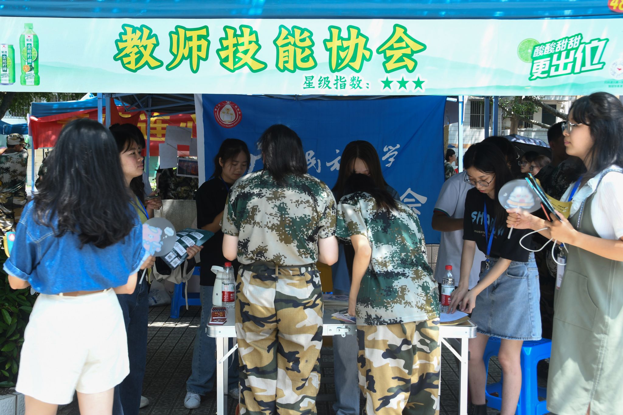 各社团组织为吸引新生入社,纷纷拿出看家本领,有精美的海报和宣传单、专业的现场讲解、精致的作品展示、礼品赠送等。校园文化发散出蓬勃生机,青春的活力在骄阳下迸发着。(编辑:闭琼月 校对:蒋欣遥)