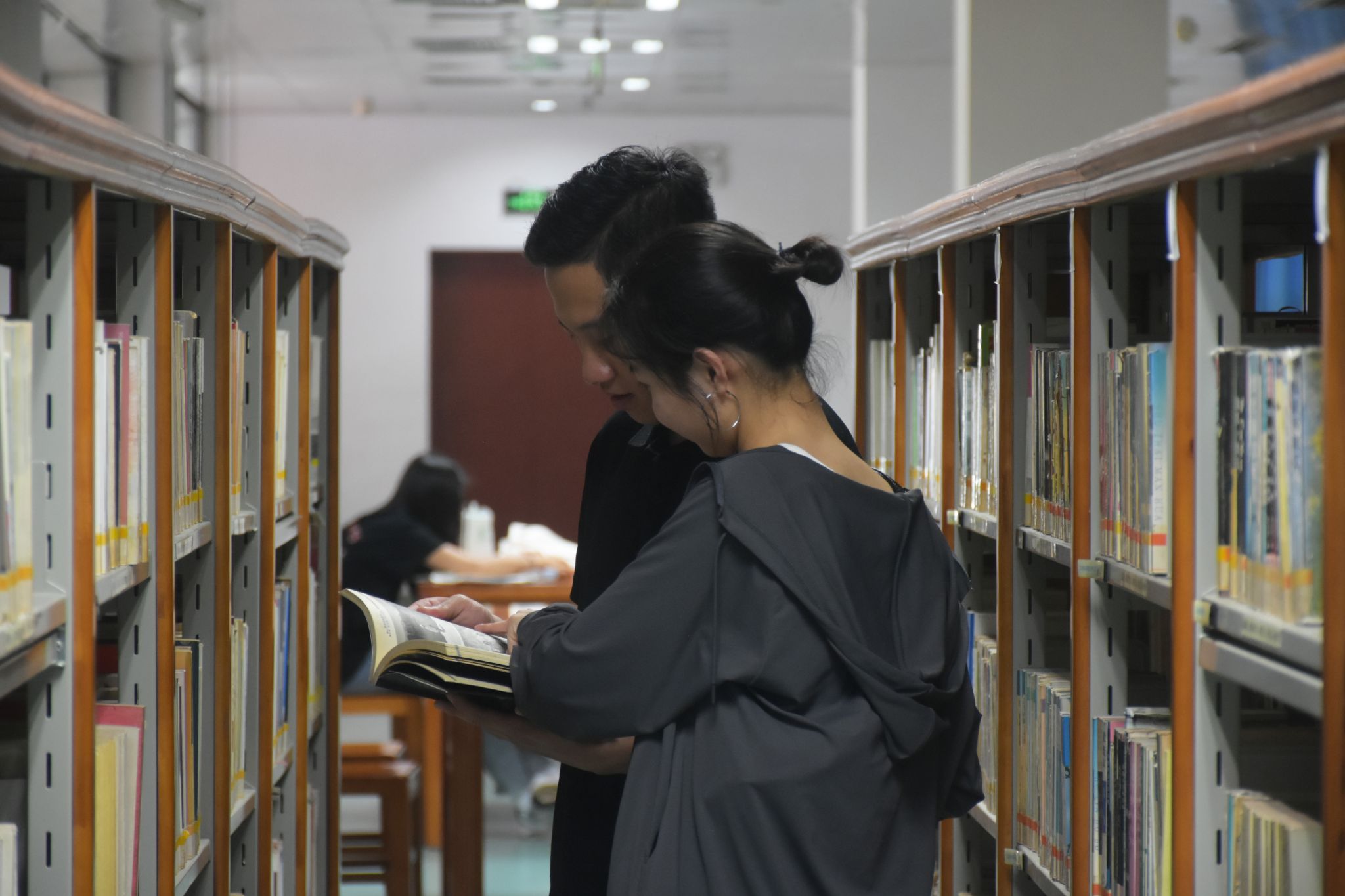 同学们在图书馆阅读