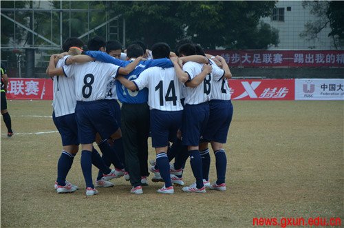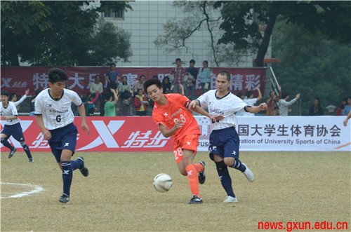 【大学生通讯社报道】由中国大学生体育协会主办、广西学校体育卫生艺术学会承办、我校协办的2014—2015“特步”中国大学生足球联赛广西赛区选拔赛开赛,旨在增强大学生体质,推动我区大学生足球运动的发展,丰富大学校园文化。来自广西高校的2支超级组队伍和30支校园组队伍于1月4日—11日在澳门网投官方网站和广西经济干部管理学院足球场展开共计63场较量。(编辑:张云海 实习编辑:罗艳妮 校对:潘鑫兰 潘兰央)