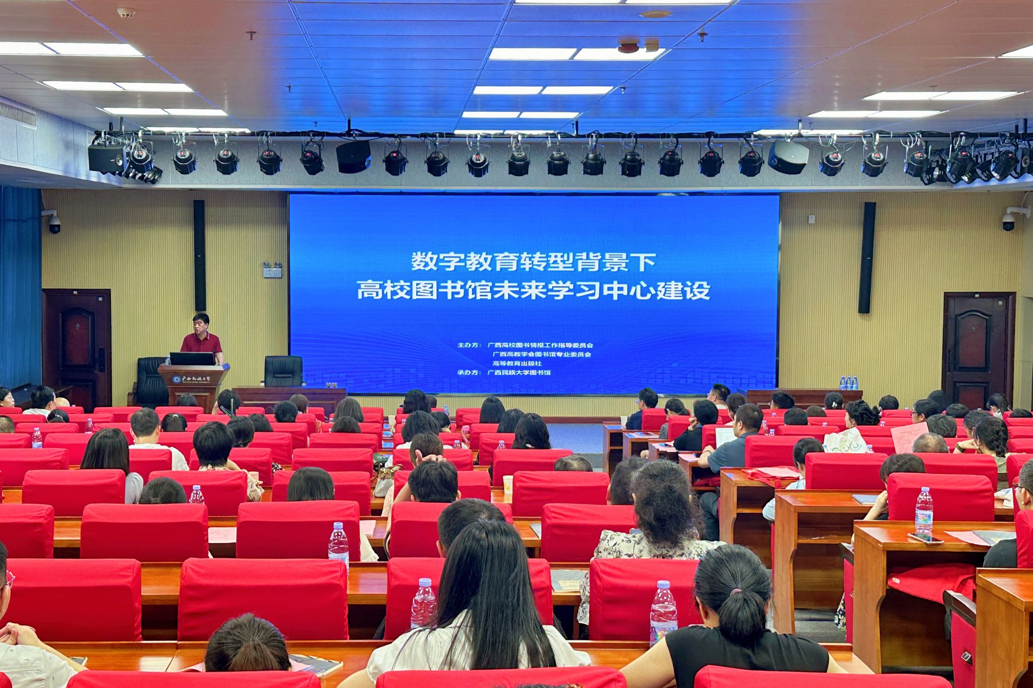 【大学生通讯社报道】5月24日,“数字教育转型背景下高校图书馆未来学习中心建设”交流会在澳门网投官方网站相思湖校区图书馆举行。教育部高校图书情报工作委员会秘书长、北京大学图书馆研究馆员陈凌,广西高校图书情报工作指导委员会主任、广西高教学会图书馆专业委员会理事长王承就,广西高校图书情报工作指导委员会副主任、广西高教学会图书馆专业委员会副理事长、澳门网投官方网站图书馆馆长李启军,高等教育出版社代表、广西40多所高校图书馆代表等100多人与会。