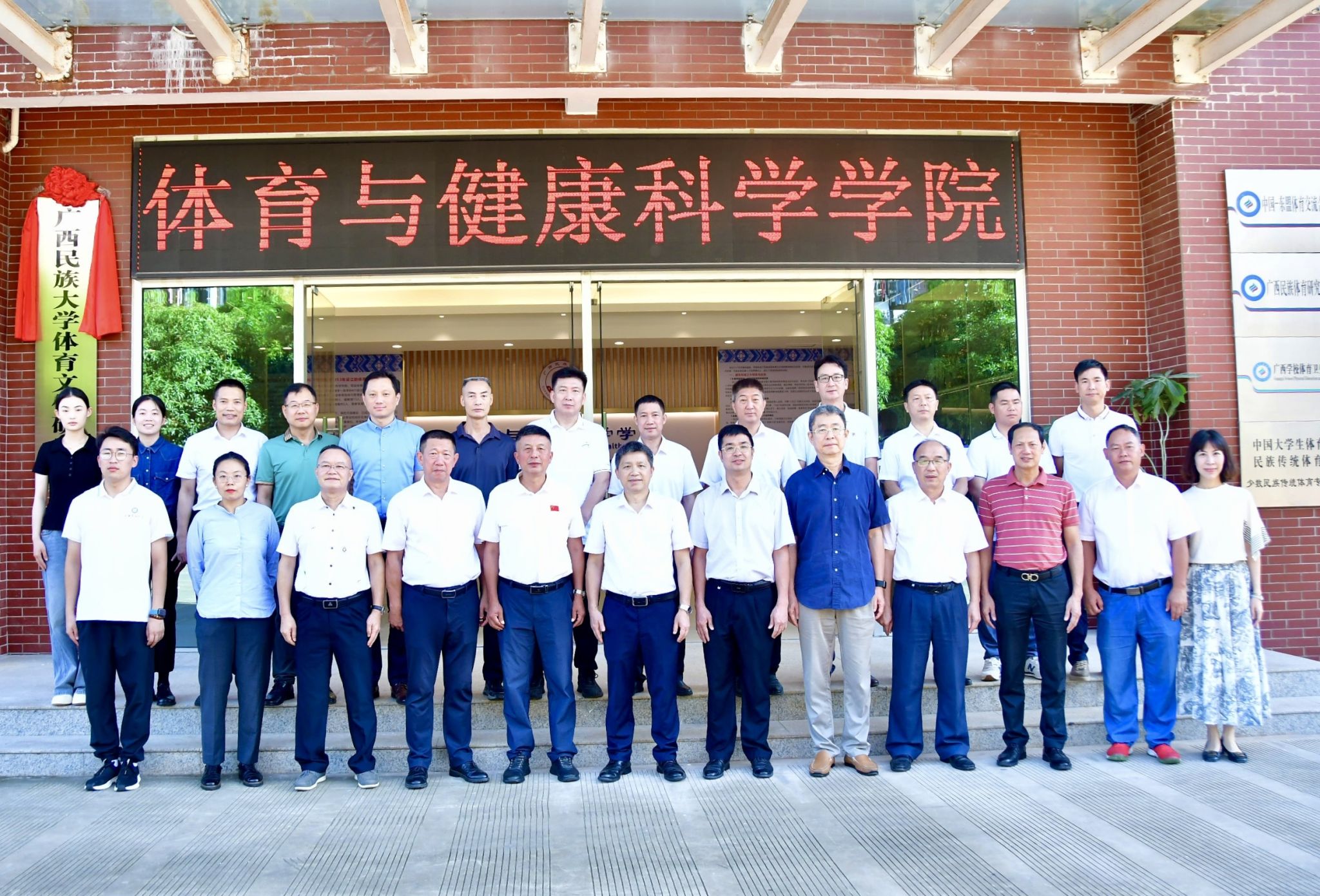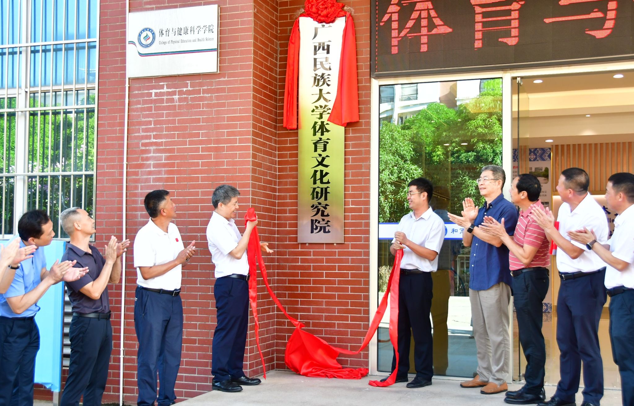 自治区教育厅体育卫生与艺术教育处负责同志,来自中央民族大学、广西师范大学、北部湾大学、南宁师范大学、广西民族师范学院、广西中医药大学等高校的专家学者,体育文化研究院成员和部分师生代表参加揭牌仪式。仪式由体育与健康科学学院党委书记张九凯主持。