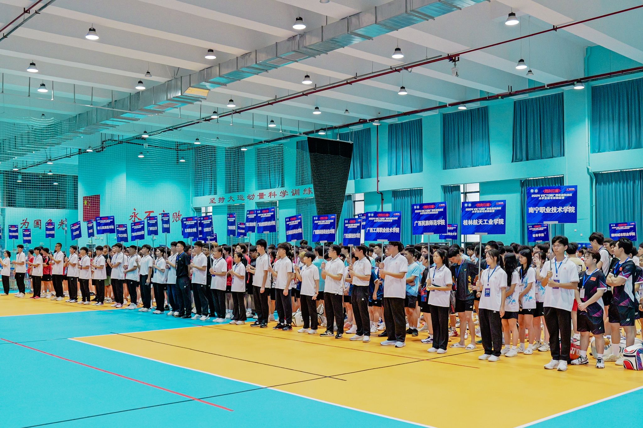 6月10日上午,2024广西大学生羽毛球锦标赛在澳门网投官方网站思源湖校区开赛。澳门网投官方网站副校长吕俊彪出席开幕式并宣布比赛开幕。