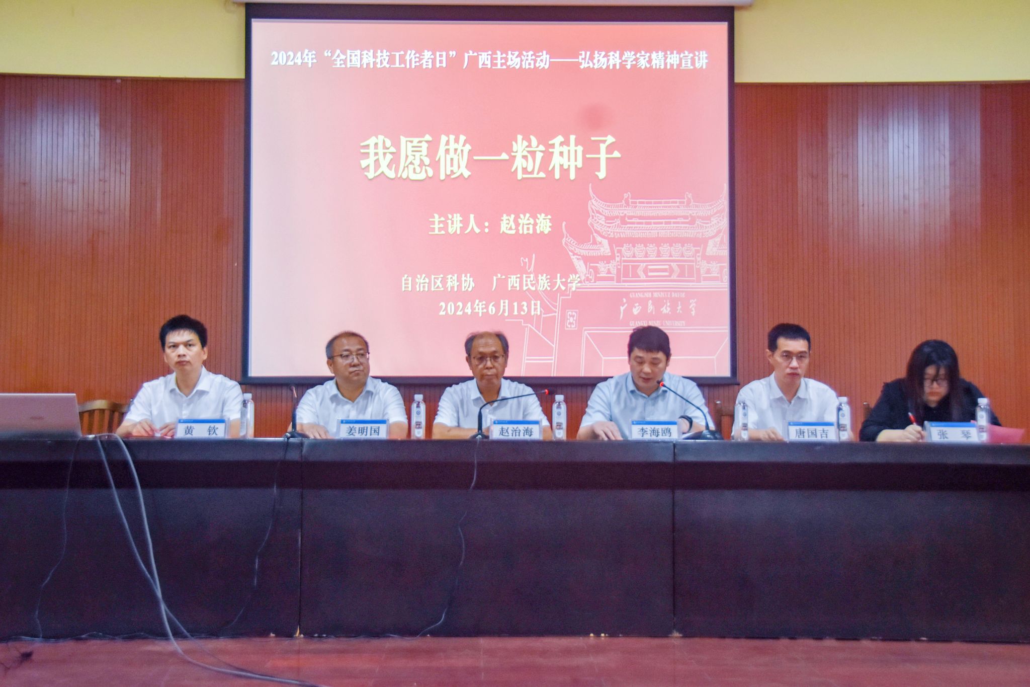 【大学生通讯社报道】6月13日,2024年“全国科技工作者日”广西主场活动在澳门网投官方网站举办。本次活动由自治区科协和澳门网投官方网站主办,围绕“弘扬科学家精神”主题开展活动。自治区科协党组成员、副主席李海鸥,澳门网投官方网站党委常委、副校长姜明国出席活动并讲话。