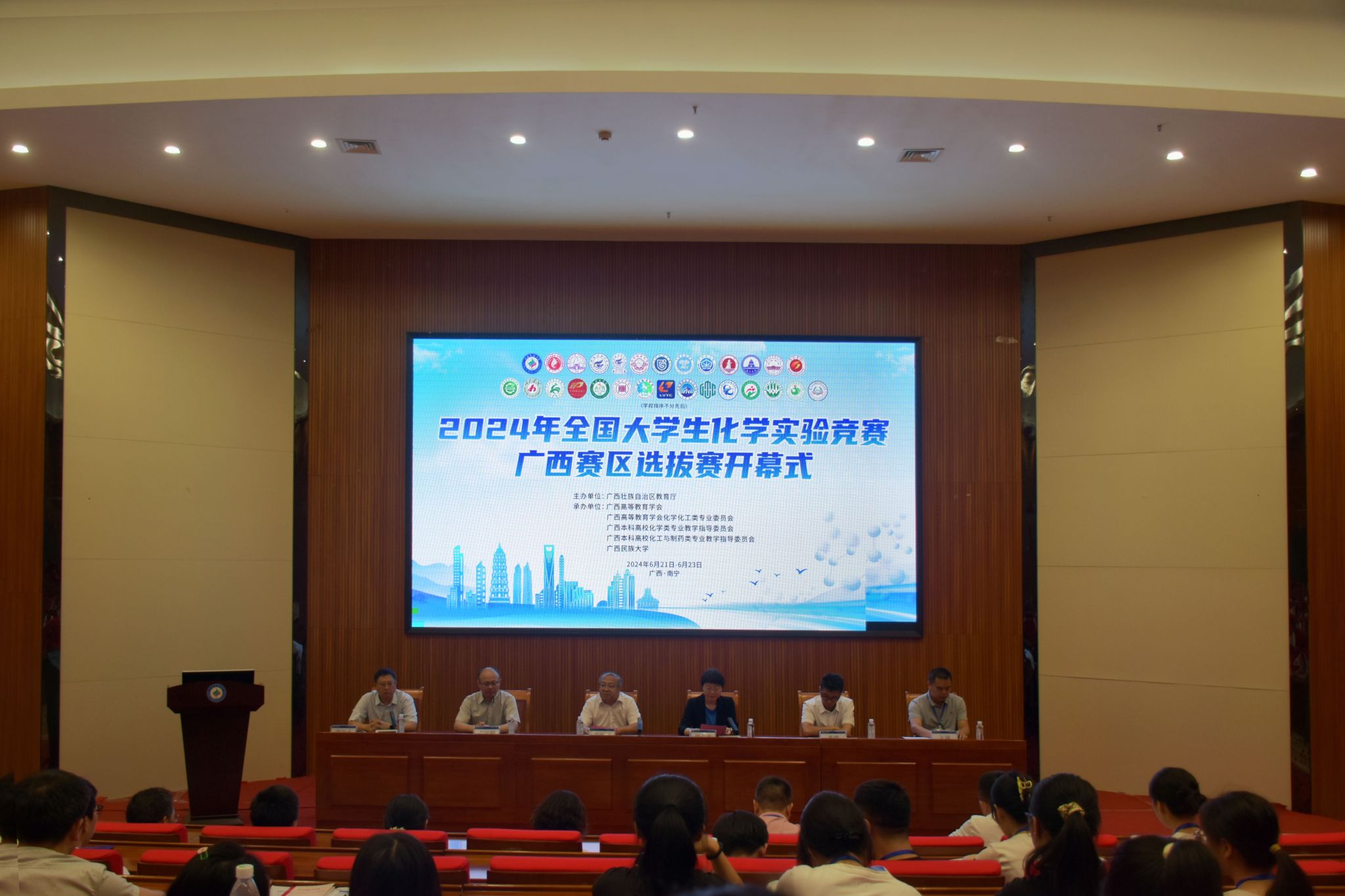 【大学生通讯社报道】6月22日上午,2024年全国大学生化学实验竞赛广西赛区选拔赛开幕式在澳门网投官方网站思源湖校区举行。澳门网投官方网站副校长姜明国,赛事委员会副主任、广西大学化学化工学院党委书记、院长周立亚出席开幕式。澳门网投官方网站化学化工学院院长谭学才主持开幕式。