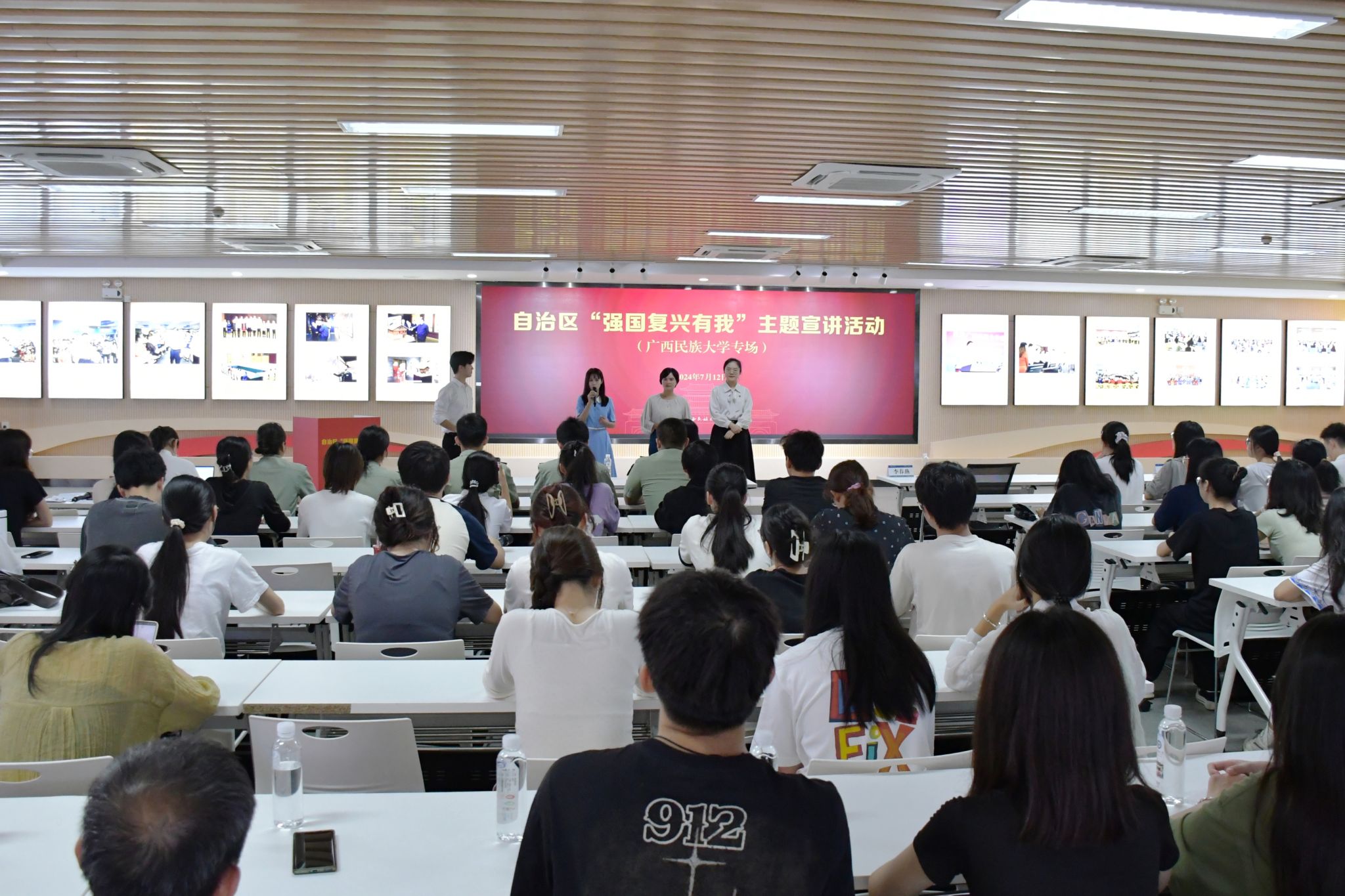 【大学生通讯社报道】7月12日,2024年自治区“强国复兴有我”主题宣讲活动澳门网投官方网站专场在学校新时代“我与祖国共成长”党团主题活动文明实践所举行。第28届中国青年五四奖章获得者李春燕,自治区“00后话百年”宣讲团成员张欣琪、蒙鑫美作宣讲,学校各级团组织负责人及学生代表参加活动。