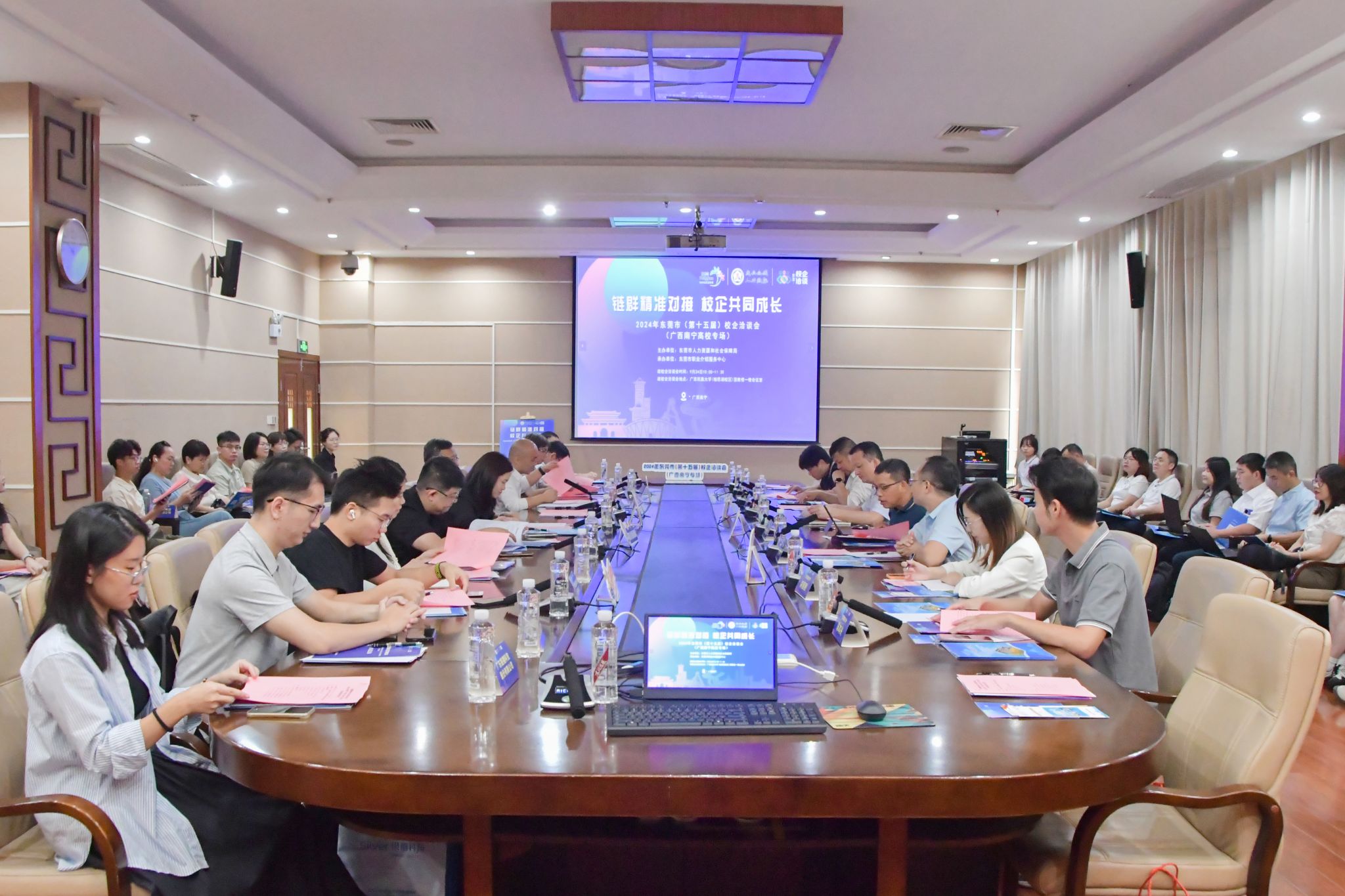 【大学生通讯社报道】9月24日上午,2024年东莞市(第十五届)校企洽谈会(广西南宁高校专场)在澳门网投官方网站举行。东莞市人力资源和社会保障局职业介绍服务中心主任叶桂兴,洪梅分局副局长叶创志,道滘分局副局长叶城起出席会议,我校及南宁学院有关职能部门、学院负责人参会。