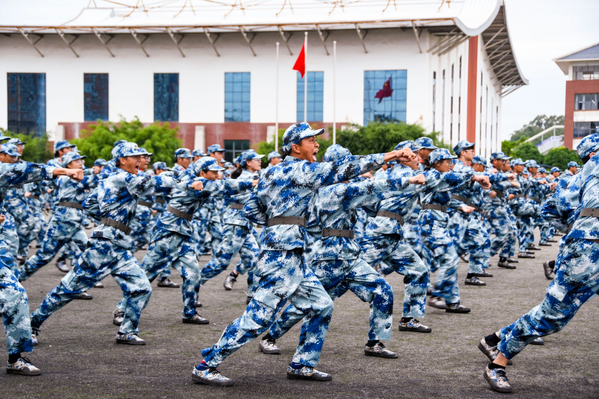 步伐训练,规范有序。他们身姿挺拔如松立,彰显坚毅不屈之品质;动作协调展风采,挥洒青春豪迈之神韵。
