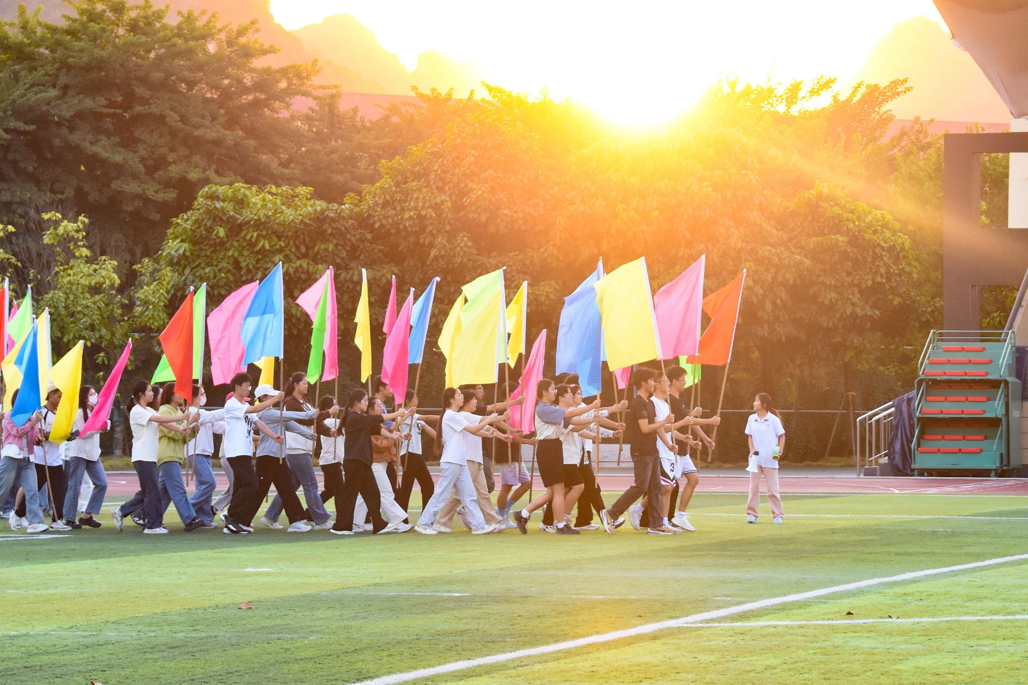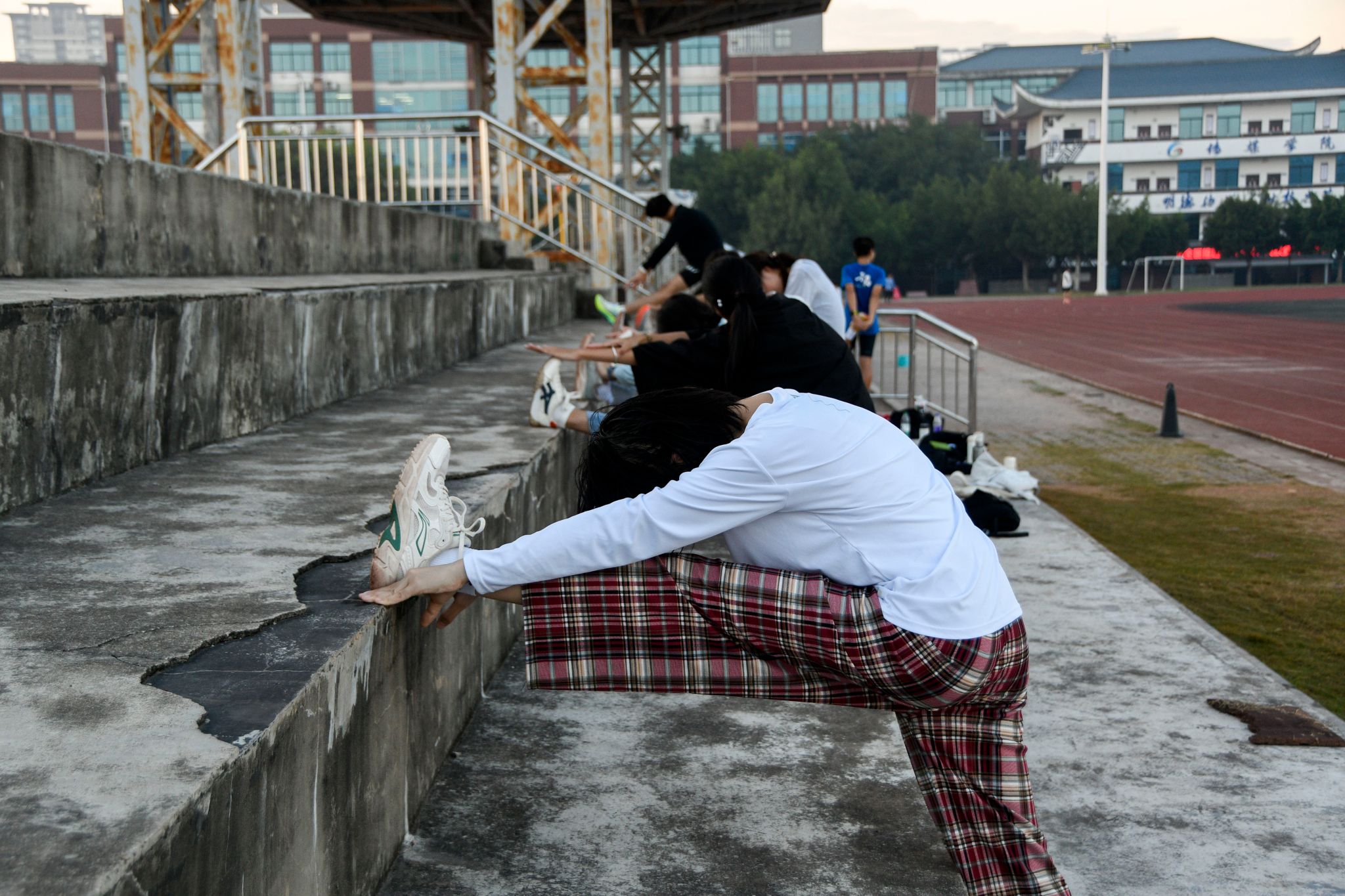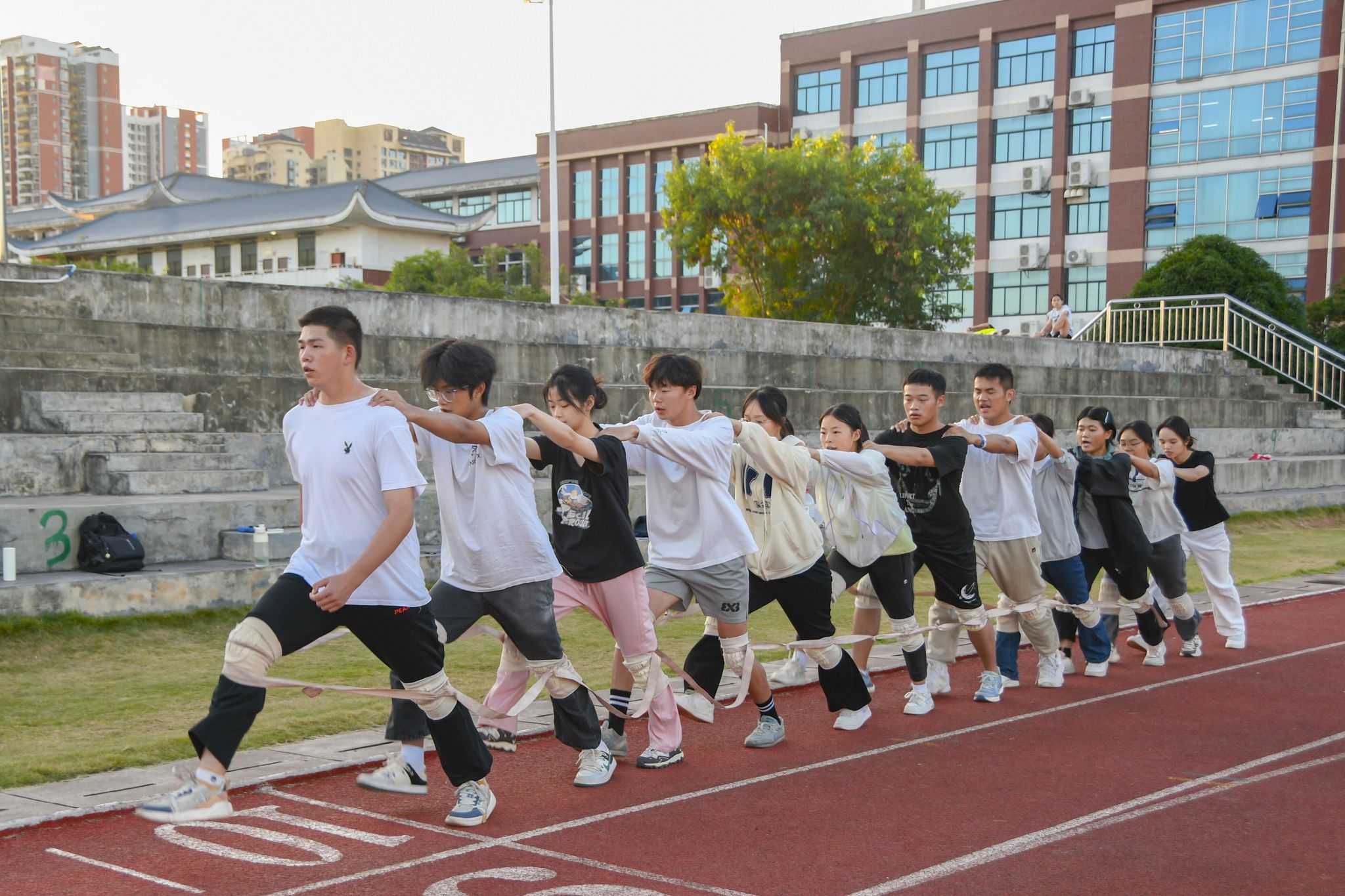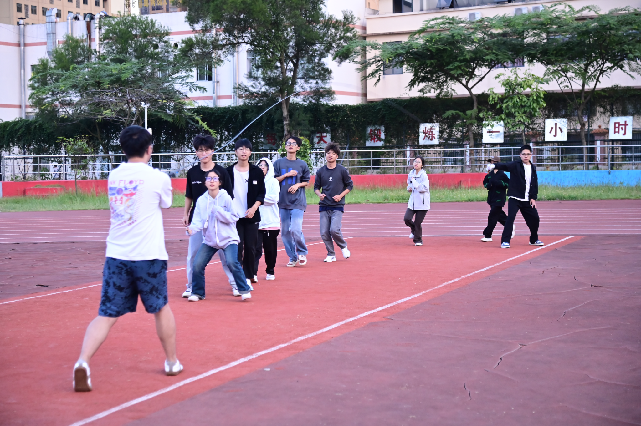 运动员们迎着朝霞,伴着落日,携手晚星,进行着紧张而有序的训练。他们以汗水为墨,以毅力为笔,在红色跑道上勾勒着属于自己未来的荣耀轨迹。
