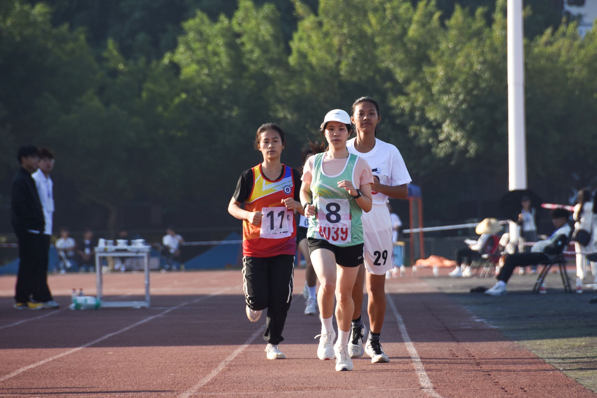 31日下午5时15分,女子甲组800米决赛进行。前半程,预科教育学院理科14班的韦慧玲并不急于建立优势,而是选择调整呼吸。进入最后100米时,现场呐喊声持续高涨,她双臂摆动,开始提速,在最后5米实现极限反超,以2分52秒32的成绩夺冠。