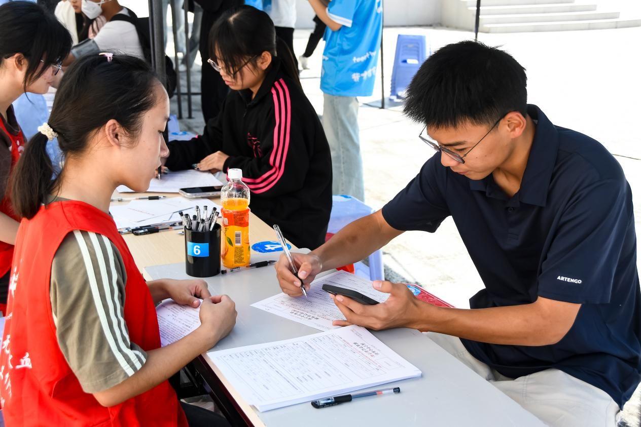 活动现场,志愿者用讲解公告牌、分发宣传单的方式向同学们介绍献血事业,引导献血者完成信息填写、体检咨询、血液初筛等准备工作,向他们科普造血干细胞有关知识及献血注意事项等事宜。