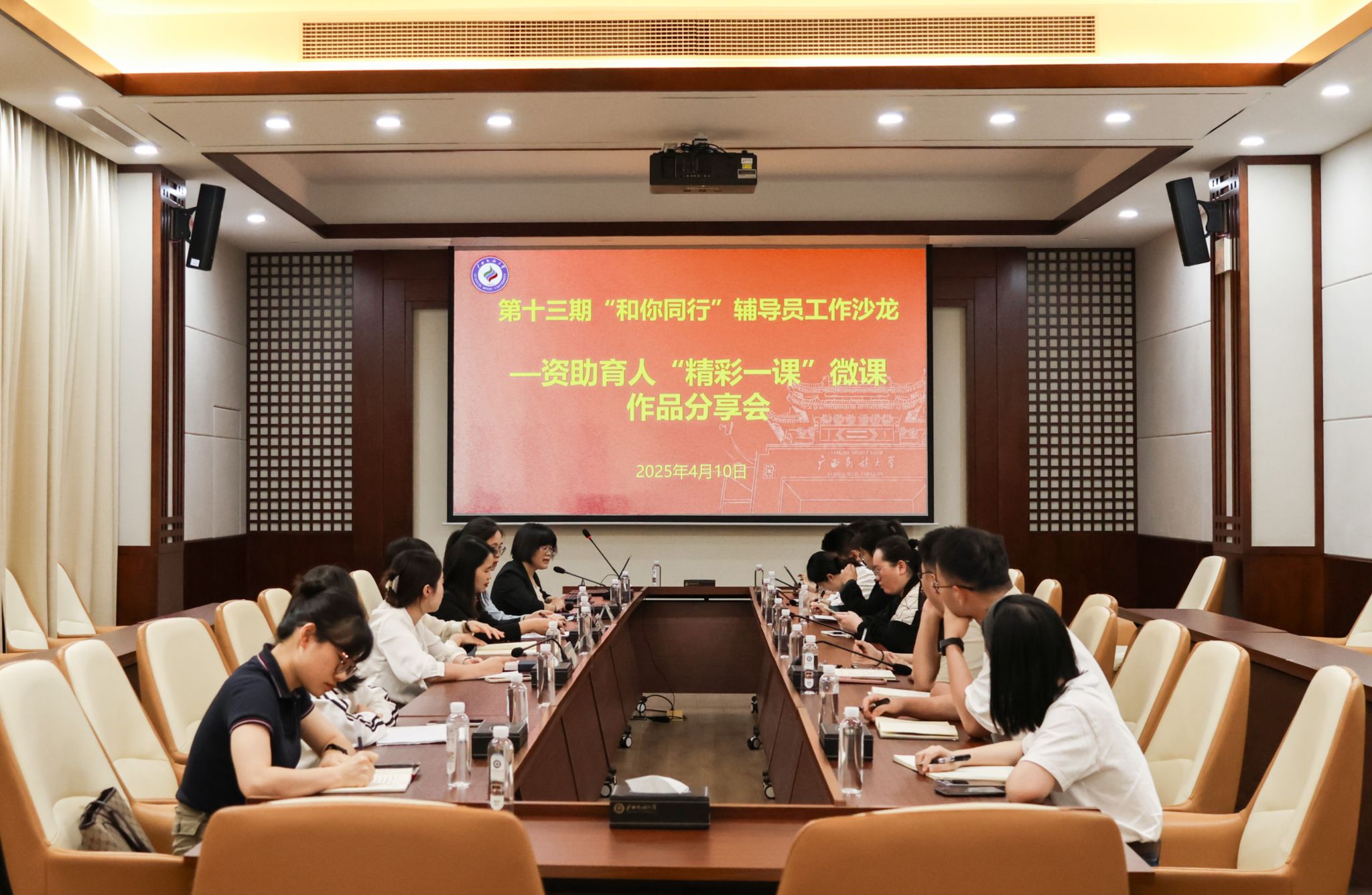 【大学生通讯社报道】4月10日,澳门网投官方网站第十三期“和你同行”辅导员工作沙龙——资助育人“精彩一课”微课作品分享会在东盟楼1号楼105会议室举行。区内兄弟院校资助育人“精彩一课”微课作品获奖教师代表和我校各学院资助专干辅导员等到场参加。