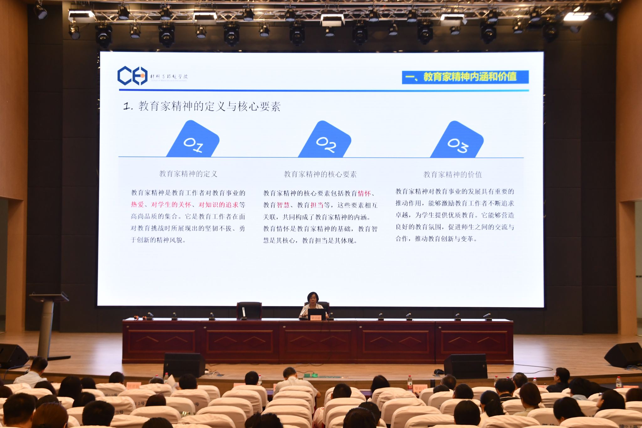 蒙洁丽作题为“以教育家精神领航,启师生共融共生新程”专题讲座。她认为,师生共融共生关系彰显了现代教育理念的核心价值。教师通过与学生建立良好的情感联系,指导学生开展创新实践和学科竞赛活动,以此培养学生创新思维,提升学生学习内驱力和竞争力。在师生合作中遇到的实际问题和创新要求促使教师进行教学改革与创新、反思与改进,提升自身教育教学能力。