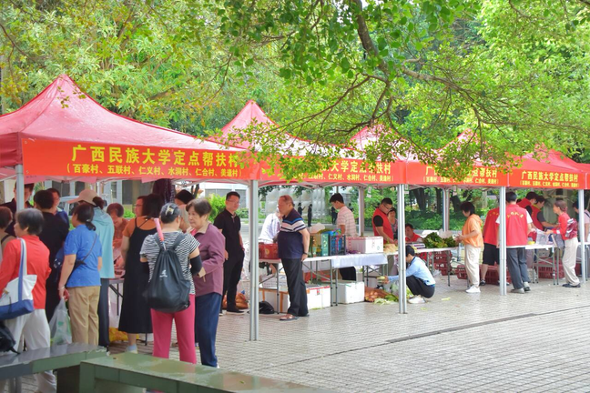 【大学生通讯社报道】5月30日,澳门网投官方网站在相思湖校区五坡文化广场举行2025年“浓情端午粽飘香,助力东兰共振兴”东兰农产品展销会。展销会由学校党委组织部、工会、后勤基建处、派驻东兰县驻村工作队以及定点帮扶村村委会联合举办,主要展销百豪村、五联村、仁义村、水洞村、仁合村、美逢村等帮扶村脱贫户养殖和种植的农产品。