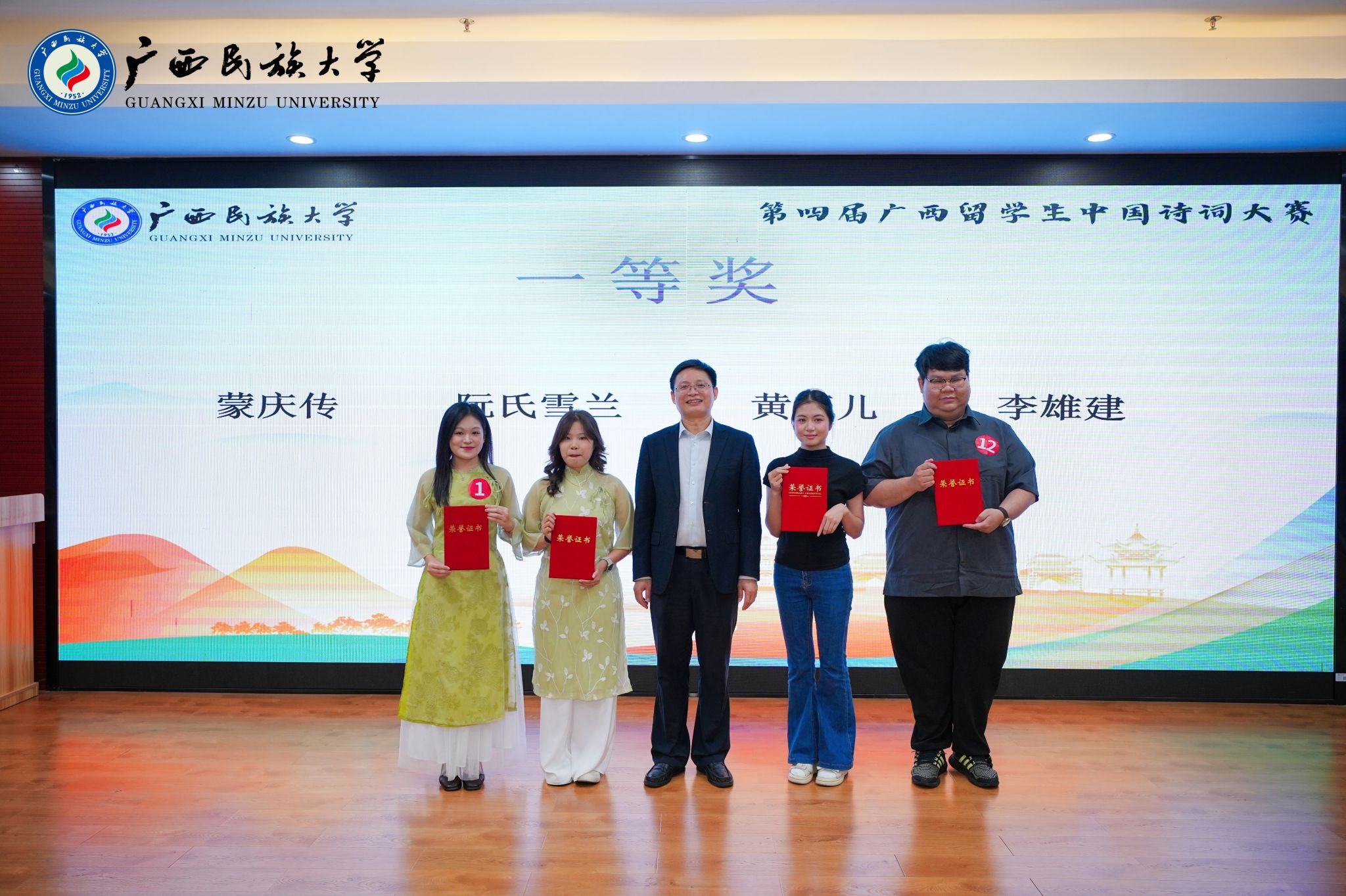 【大学生通讯社报道】10月25日,第四届广西留学生中国诗词大赛在澳门网投官方网站相思湖校区举行。本次大赛由广西高等教育学会外国留学生教育事业管理专业委员会主办,澳门网投官方网站国际合作与交流处(国际教育学院)承办。澳门网投官方网站获得团体赛一等奖,澳门网投官方网站留学生黄燕儿、李雄建获个人赛一等奖。