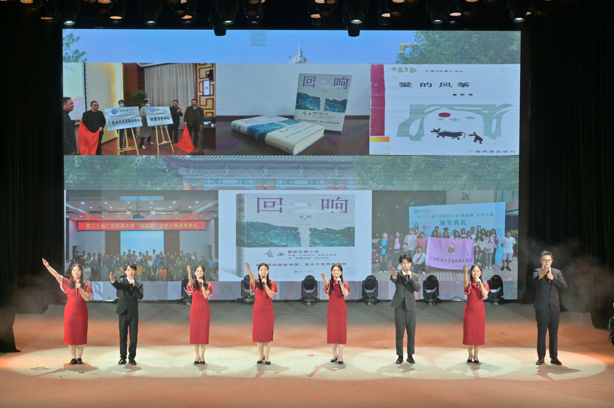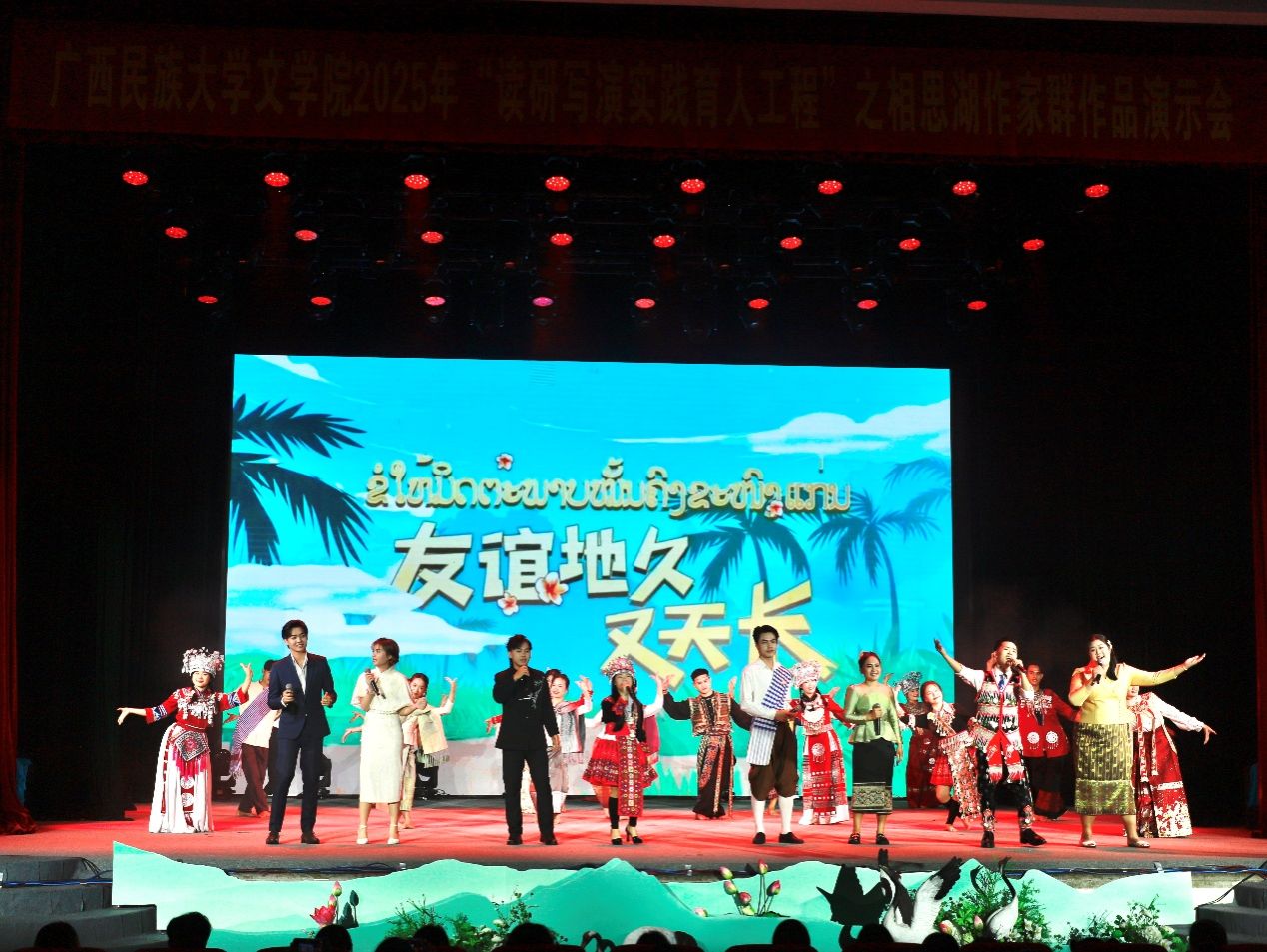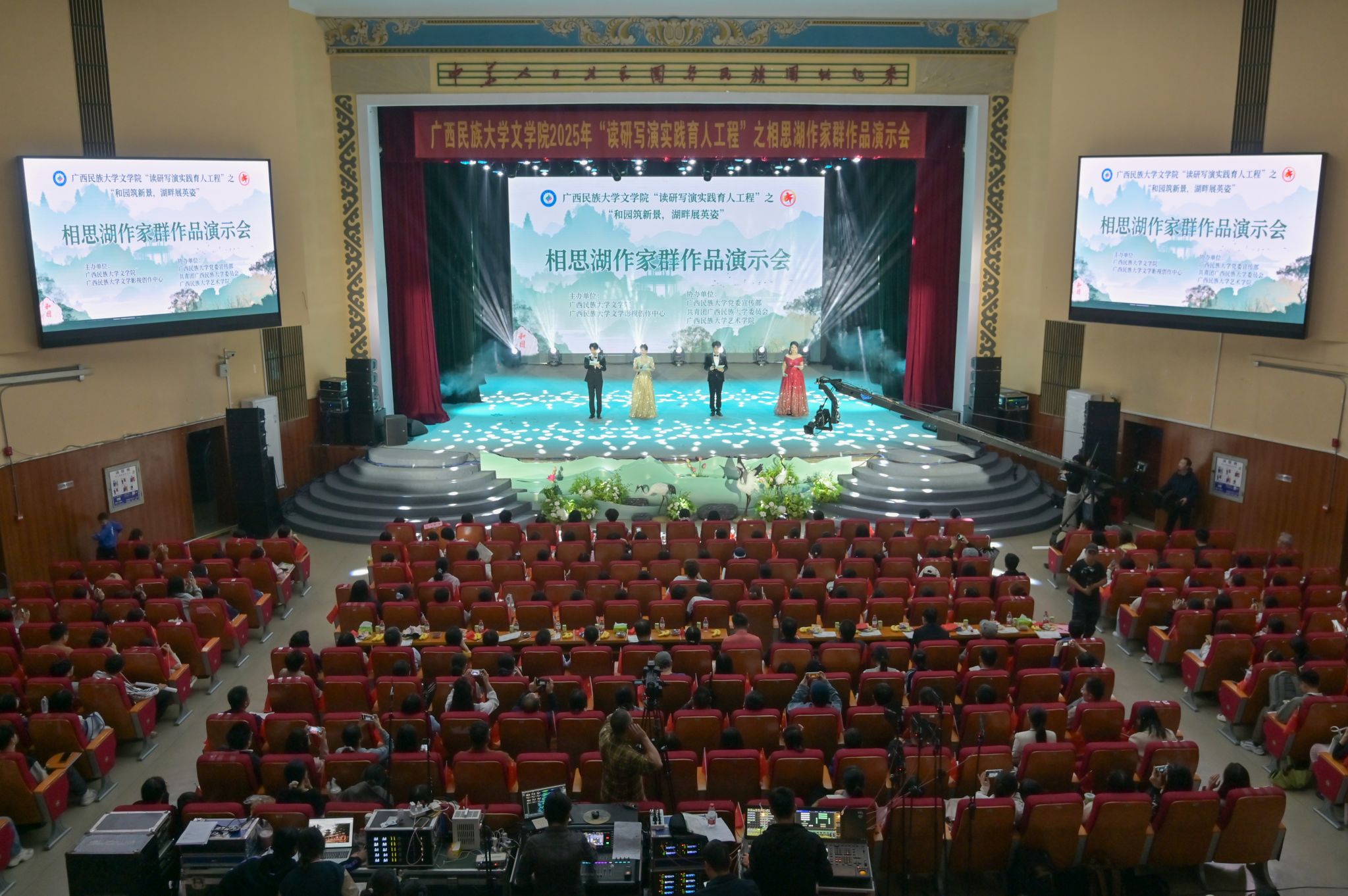 11月1日,澳门网投官方网站文学院“读研写演实践育人工程”之相思湖作家群作品演示会于相思湖校区大礼堂举行。澳门网投官方网站党委副书记、纪委书记韦雪芳,广西作协党组成员、秘书长杨合,全国各地参加国际中文教育研究方法学术研讨会的专家学者,学校有关单位负责人等出席活动,共赏这场文学与艺术交融的盛宴。