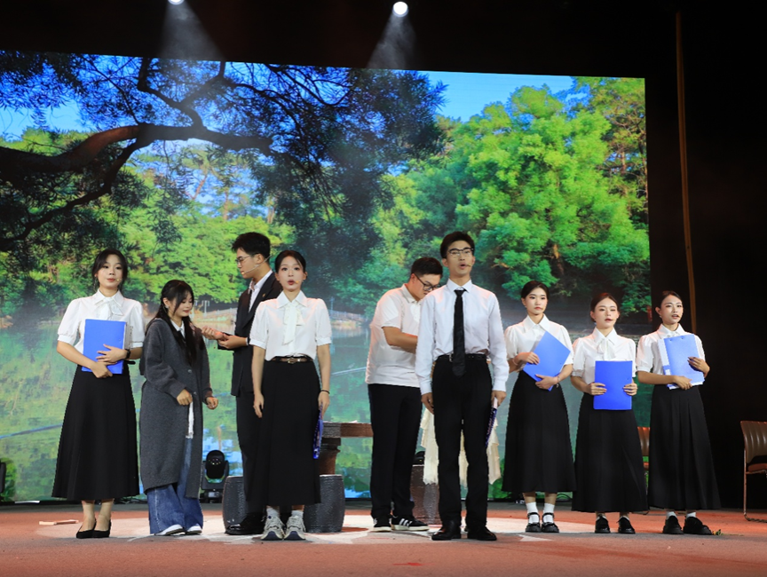 诗舞剧《湖边切片,不如就做一只飞鸟》,以一幕流动的画卷开启第一篇章。文学院主持团以声为笔,倾情演绎诗歌朗诵《诗海拾贝》,以诗诵串联起作家群的创作初心与哲思脉络,引领观众漫游于诗意的海洋,触摸文学育人的温润与深厚。一曲《那湖相思》悠扬而起,教师代表的深情演唱,带领观众们共忆相思湖畔的文学情、人间暖。诗电影《相思湖纪事,旧梦与新声》续写湖边的叙事,让往事的沉香与未来的清音在此刻交汇成章。首章虽落,诗意未央。那些被语言与舞姿点亮的瞬间,仍在湖畔回荡,如涟漪不绝。