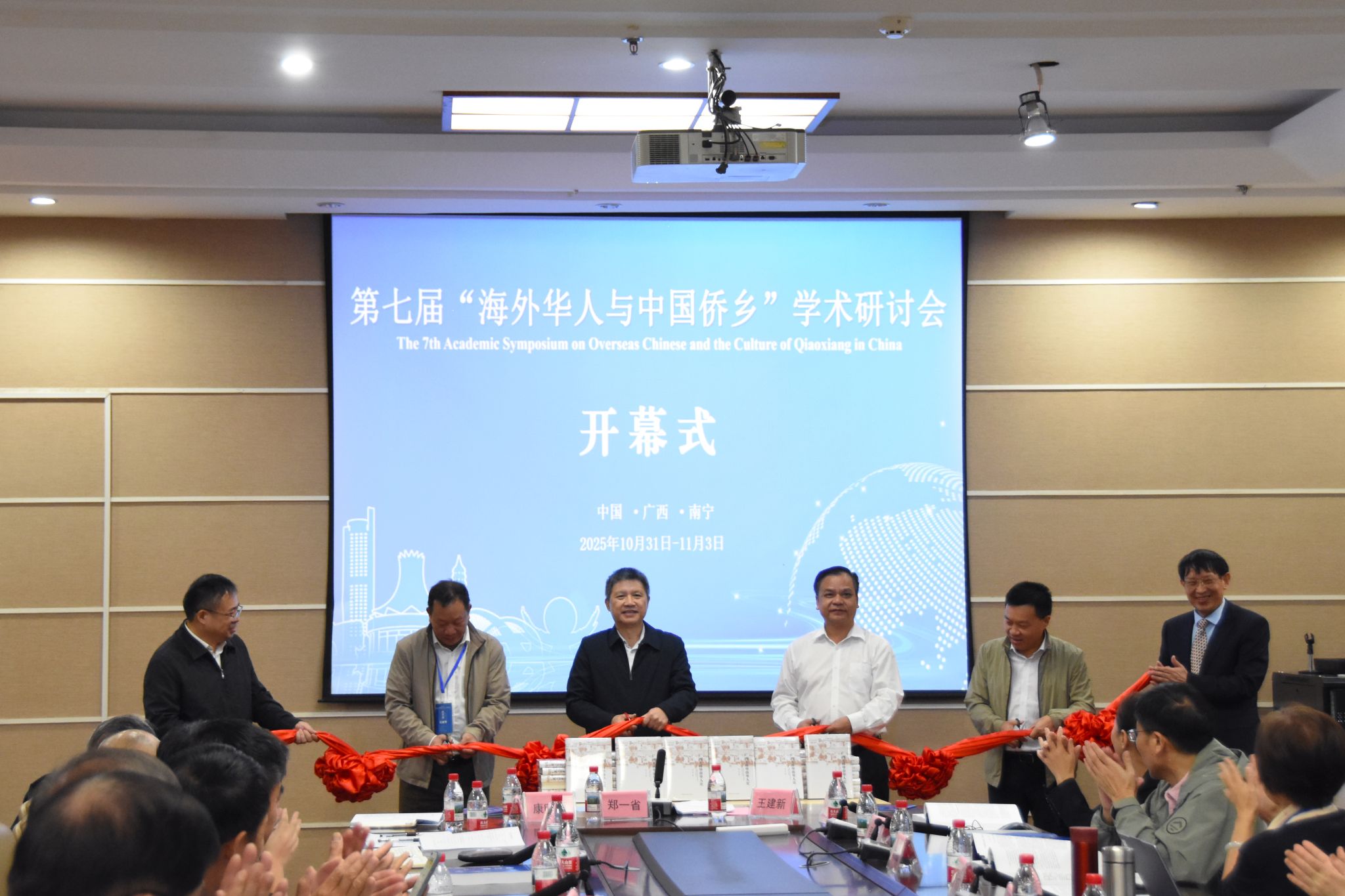 【大学生通讯社报道】11月1日,第七届“海外华人与中国侨乡文化”学术研讨会在澳门网投官方网站举行。副校长吕俊彪,自治区归国华侨联合会副主席潘锦昌出席会议。来自北京大学、厦门大学、暨南大学等国内外知名高校和研究机构的80余名专家学者参加会议,共同探讨海外华人与侨乡文化研究的前沿议题。