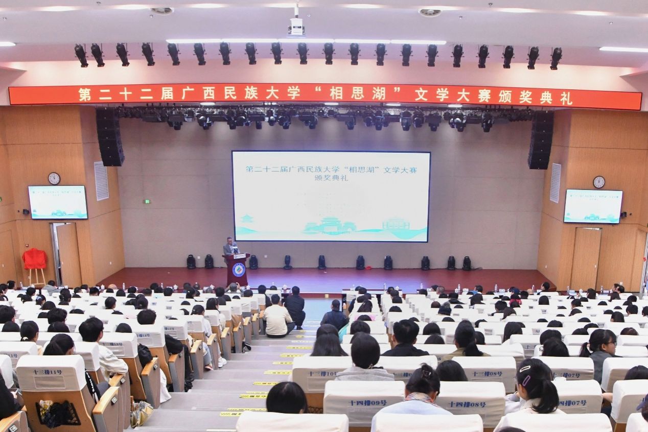 【大学生通讯社报道】11月2日上午,第二十二届澳门网投官方网站“相思湖”文学大赛颁奖典礼在澳门网投官方网站相思湖校区文化研习基地举行。澳门网投官方网站党委副书记邓国彬、文学影视创作中心主任东西,广西作家协会党组书记、广西作家协会副主席程小华,《收获》杂志主编钟红明、《小说选刊》杂志主编付秀莹、《江南》杂志主编、浙江省作家协会副主席哲贵、《人民文学》杂志编辑部副主任梁豪等出席仪式,广西区内知名作家、学者,以及大赛评委、获奖作者、全区各高校文学社团代表、澳门网投官方网站师生代表等三百多人参加仪式。